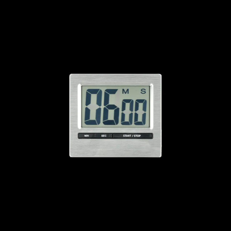 Minutur/timer med stort display. Aluminium. Bordstander, ophængning og magnet.