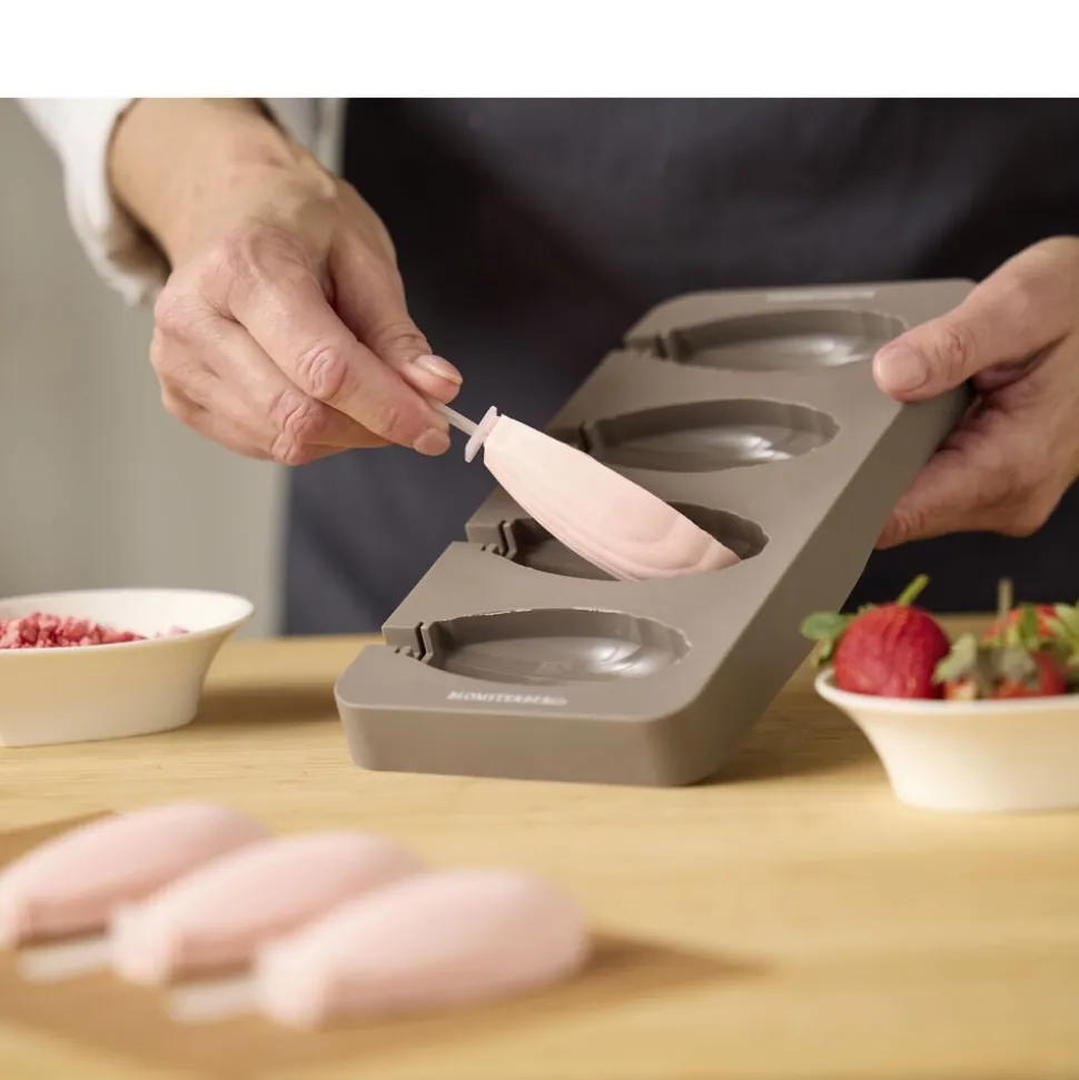 Denne ispindeform i blød og lækker silikone har plads til fire hjemmelavede ispinde. Fyld formen med din favoritsaft, smoothie eller isblanding. Sæt de medfølgende plastikpinde i formen, og lad fryseren færdiggøre arbejdet for dig. Når sulten melder sig, vipper du nemt dine ispinde ud af den fleksible silikoneform. Formen tåler fryser (max -20 °C) og kan nemt rengøres i opvaskemaskinen.