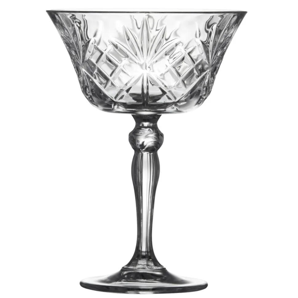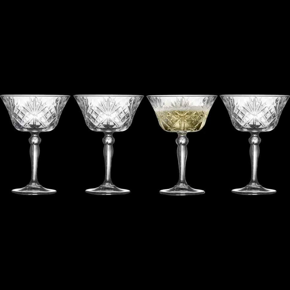 Champagneskålen fremhæver sit perlende indhold på smukkeste vis, når glassets elegante mønster reflekterer omgivelsernes lys og skygger. 26 cl, 4 stk.
