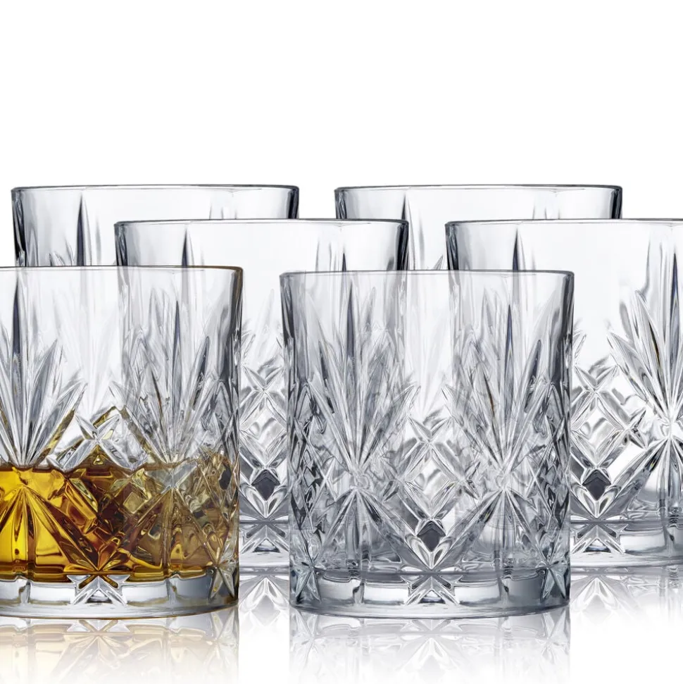 Nyd yndlingswhiskyen af det klassiske whiskyglas, som fremhæver drikkens nuancer, når omgivelsernes lys og skygger reflekteres i glassets smukke mønster. Tåler opvaskemaskine. 31 cl, højde 9,5 cm, 6 stk.