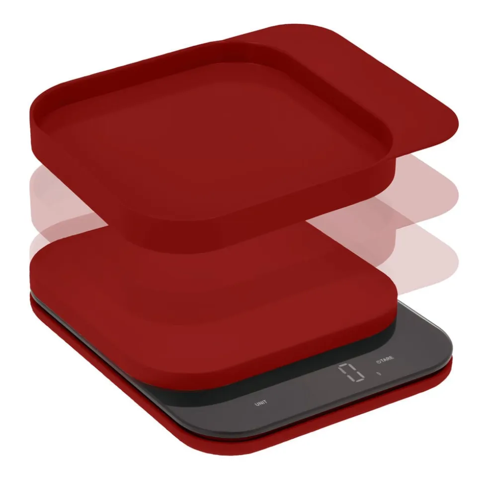 Der kan skiftes mellem flere måleenheder, g, kg, oz, lb, ml, fl oz, og vægten har tarafunktion. Tændes manuelt og slukker automatisk. Fire L-formede silikonefødder i samme farve som vægten er placeret under bunden.