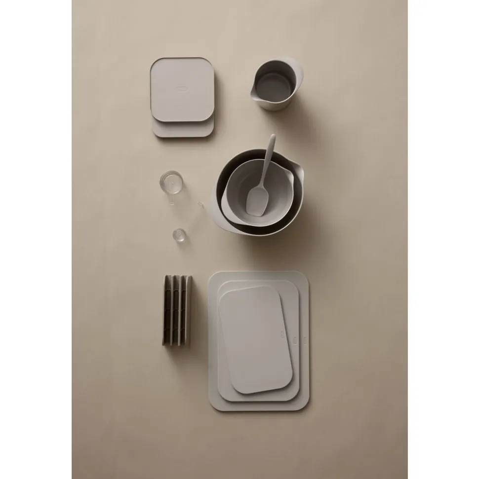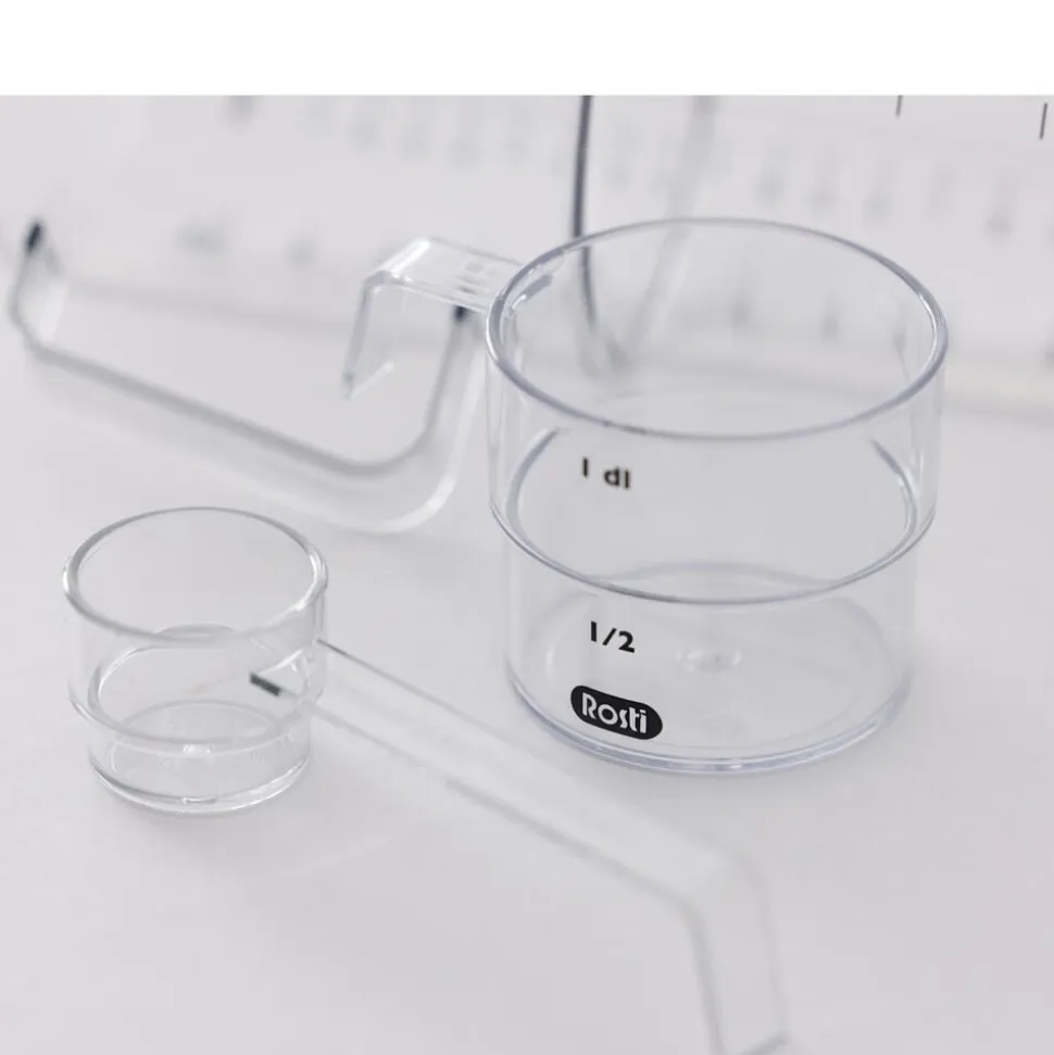 Mensura betyder ’at måle’ på latin, og formålet med Mensura-serien er netop at måle hurtigt og præcist. Det flotte design hjælper dig godt på vej, idet alle produkter er udformet med en markering midtpå, der opdeler i en halv/en hel liter på målekanden, en halv/en hel deciliter på målebægeret og teske/spiseske på måleskeen. Udformningen gør samtidig produkterne lette at stable.