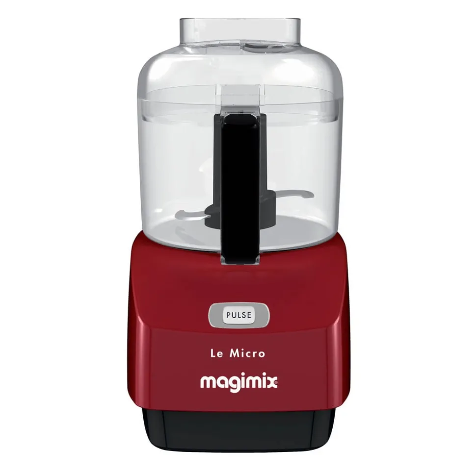 Magimix minihakker er effektiv, stilfuld og støjsvag. Den optager kun lidt plads på køkkenbordet og har et så flot design, at du gerne lader den stå fremme. Betjeningen er enkel. Låget har to åbninger til påfyldning af henholdsvis flydende og faste ingredienser, sættes let på og tages lige så nemt af. På fronten findes en enkelt knap til at aktivere både pulse-funktion og kontinuerlig kørsel, når knappen holdes nede.