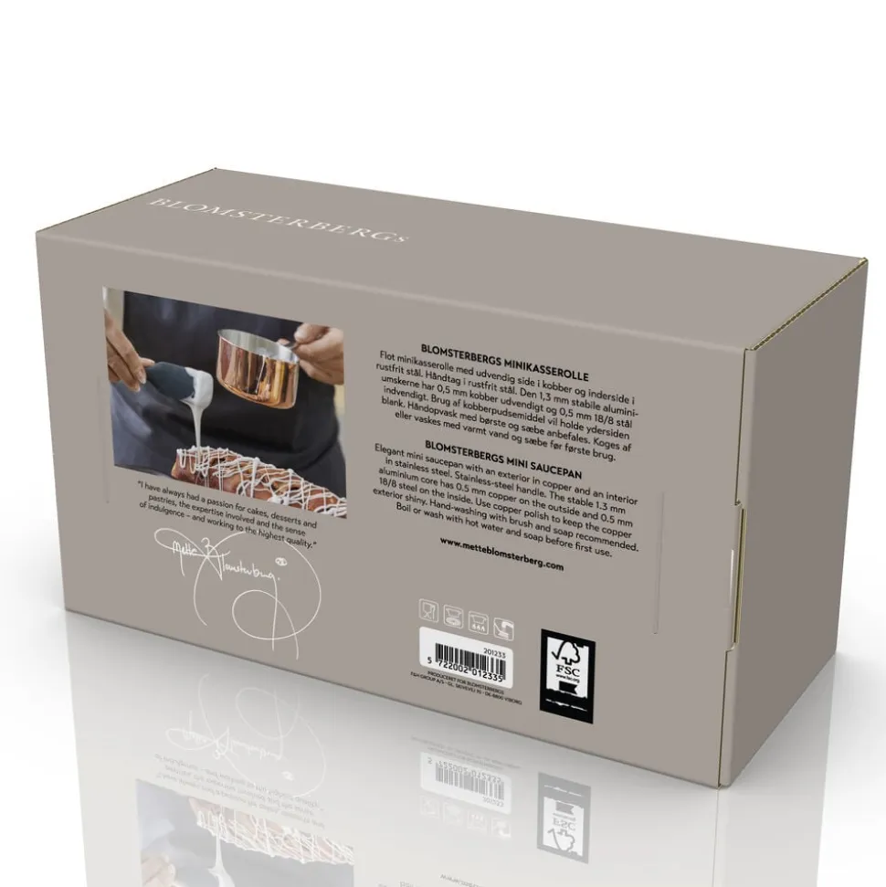 Smuk, stilren og meget funktionel minikasserolle fremstillet i kobber og rustfrit stål. Kasserollen gør sig flot på middagsbordet og er perfekt til servering af sauce, bærcoulis, småsvampe o.l.