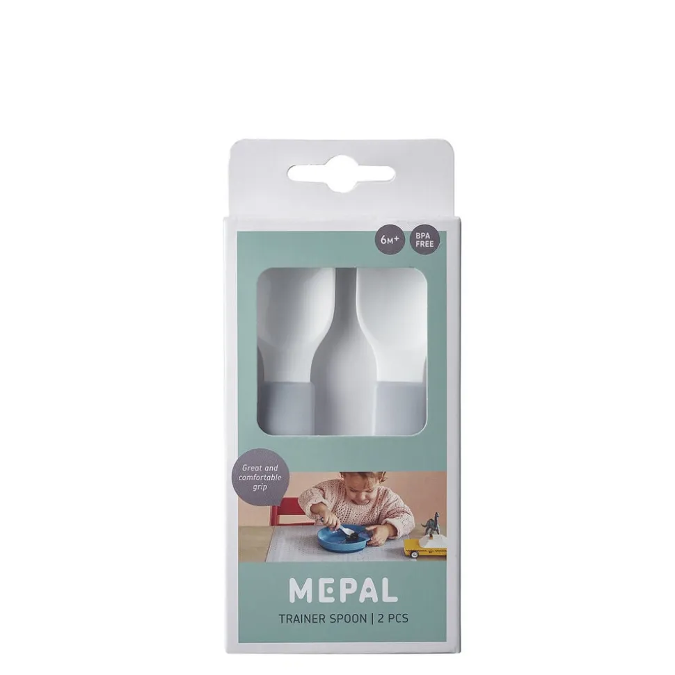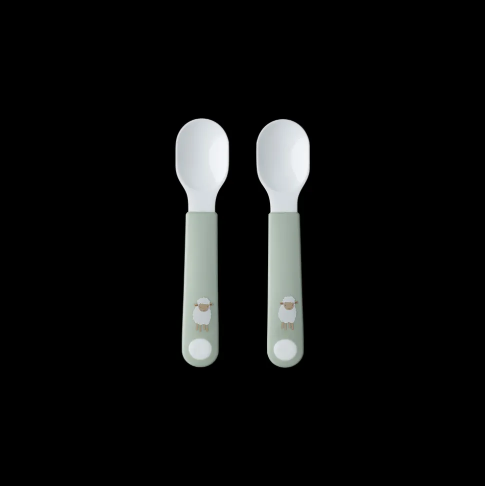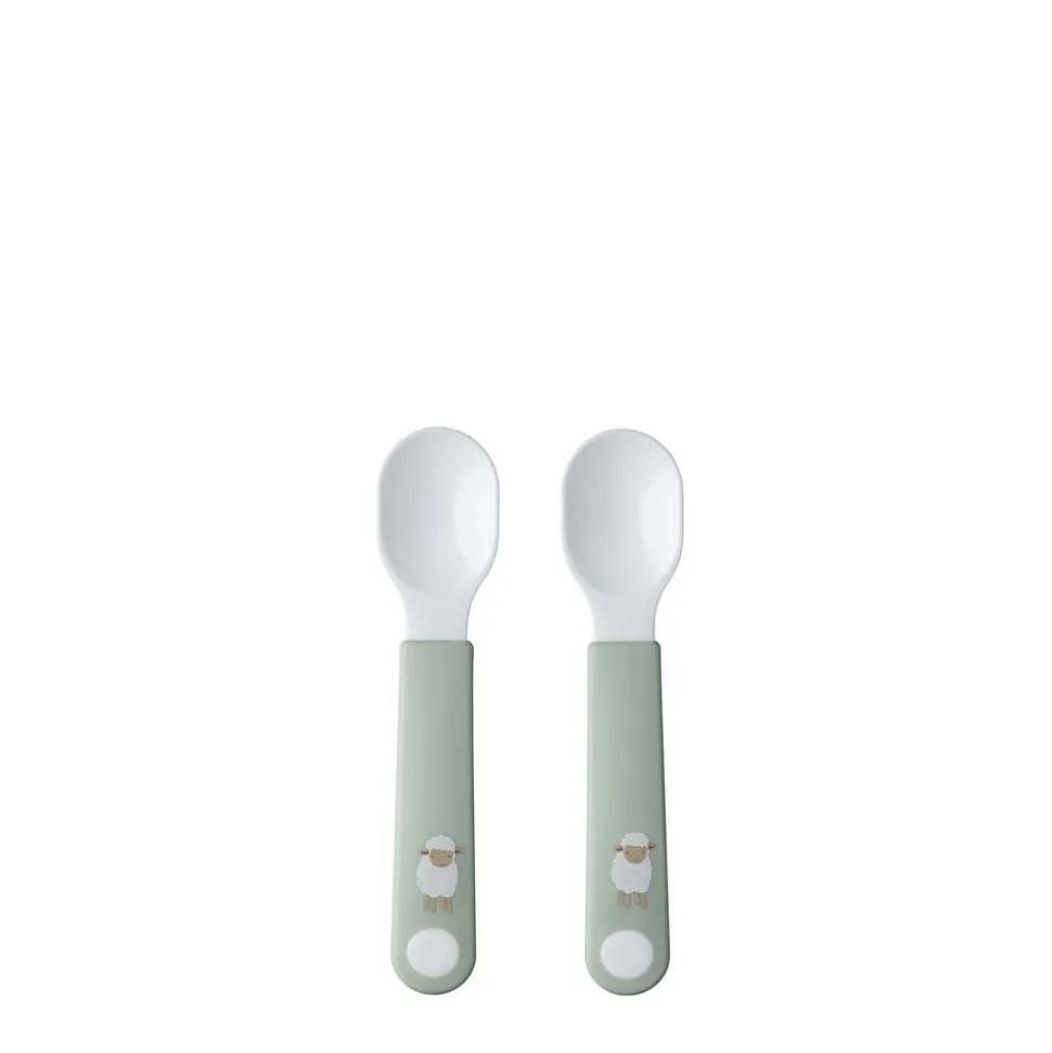Smart og robust Mio Begynderske med godt greb i det korte håndtag til barnet, der har lært at spise selv. Sættet indeholder to skeer, der kan vaskes i opvaskemaskine. PP og TPE.