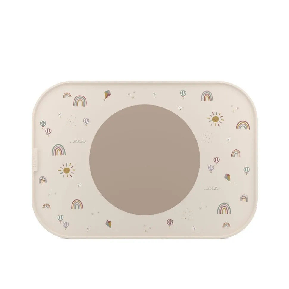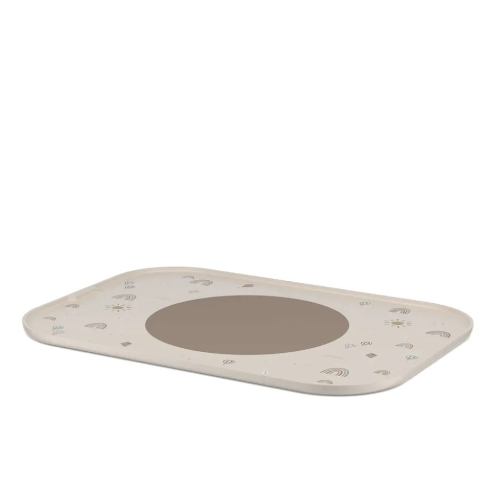 Den robuste dækkeserviet kan fungere både som bakke og dækkeserviet – en detalje, der giver perfekt mening i daglig brug. Dækkeservietten er fremstillet af PP-plast og udstyret med en skridsikker cirkel af silikone, der holder tallerkenen på plads, mens barnet spiser. Cirklen kan fjernes, og dermed bliver rengøringen endnu nemmere. Vaskes nemt i opvaskemaskinen. 28 x 40 cm.
