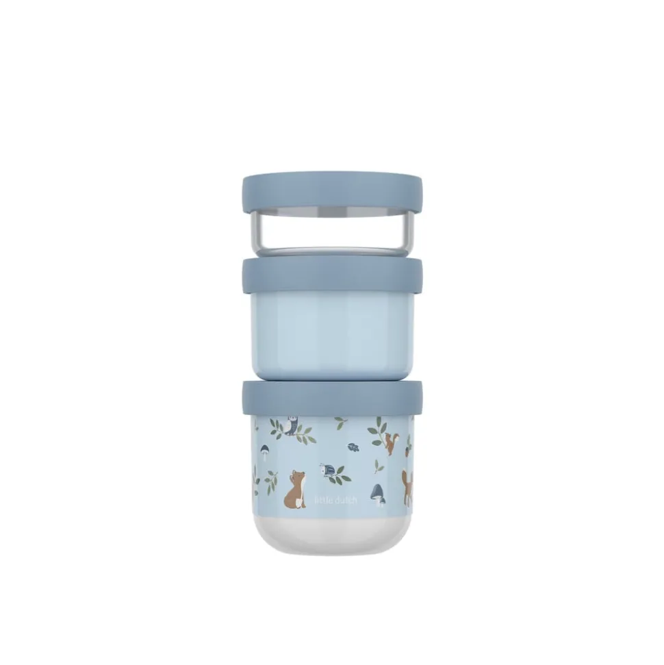 Mio snackboks-tårn består af tre snackbokse i forskellige størrelser, som nemt kan klikkes sammen og tages med på tur. Alle boksene har tætsluttende skruelåg. Den mindste boks er transparent og rummer 100 ml, den mellemste er ensfarvet og rummer 175 ml, mens den største har et karakteristisk Mio-motiv og rummer 275 ml. Alle tre størrelser tåler fryser, og de to største bokse kan også anvendes i mikroovn.