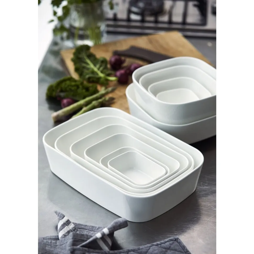 Ovnfast fad i hvidt porcelæn til det skandinaviske køkken. Fadet er fremstillet i forstærket porcelæn, der kan tåle ovntemperatur helt op til 350 grader. Den høje kant og praktiske form giver mange anvendelsesmuligheder. 15 x 11 x 5 cm.