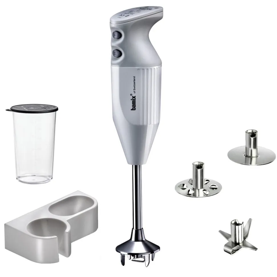 bamix® Mono-stavblender med en kraftig 200 watt motor, der sikrer pålidelig hjælp til selv de hårdeste opgaver i køkkenet. Stavblenderen har to hastighedsindstillinger og en praktisk ledning, der giver masser af fleksibilitet. Til produktet medfølger multifunktionskniv, blenderskive, piskeskive, bæger med låg 600 ml og vægholder samt en instruktionsmanual. Livstidsgaranti på motor.