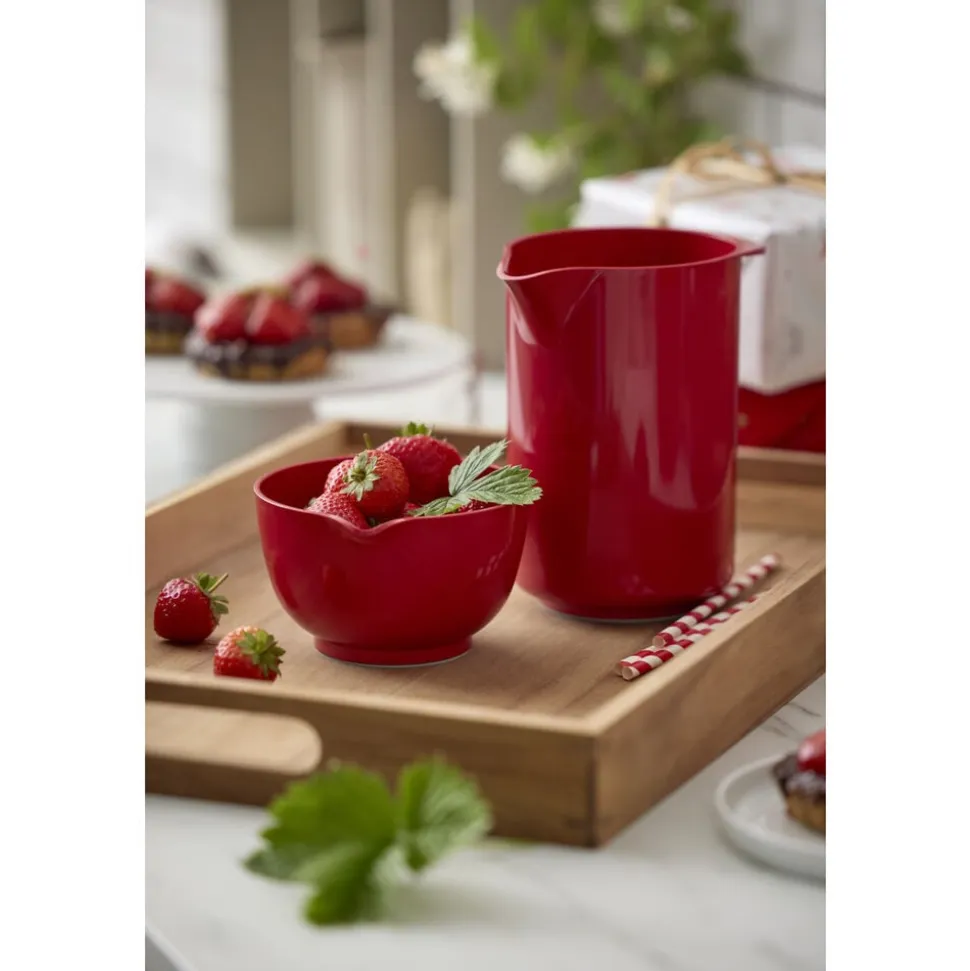 Rostis klassiske mixkande er et musthave i ethvert køkken, såvel til tilberedning som til servering og opbevaring. Mixkanden er designet til at matche Margrethe-skålen og fås i de samme farver. Kanden har praktisk greb og hældetud og rummer 1,25 liter, og den er lige praktisk til at piske flødeskum i og til at servere drikkevarer i.