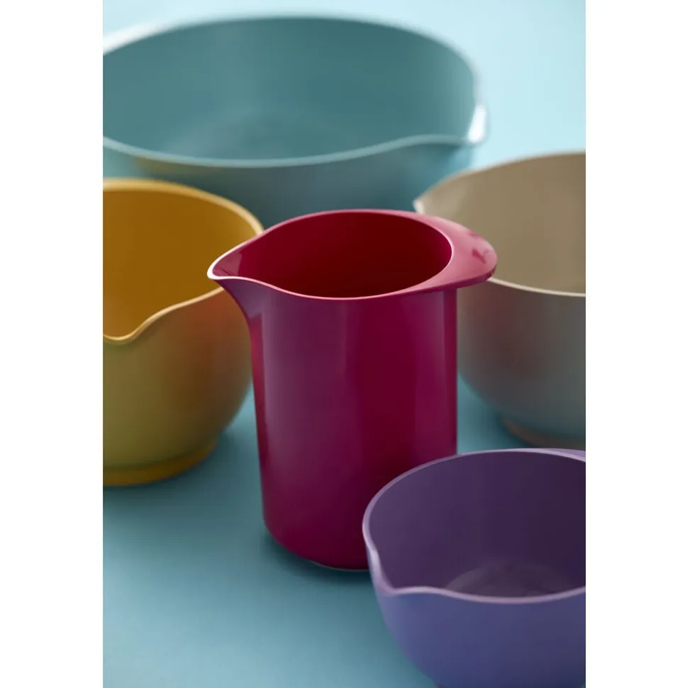 Rostis klassiske mixkande er et musthave i ethvert køkken, såvel til tilberedning som til servering og opbevaring. Mixkanden er designet til at matche Margrethe-skålen og fås i de samme farver. Kanden har praktisk greb og hældetud og rummer 1,25 liter, og den er lige praktisk til at piske flødeskum i og til at servere drikkevarer i.