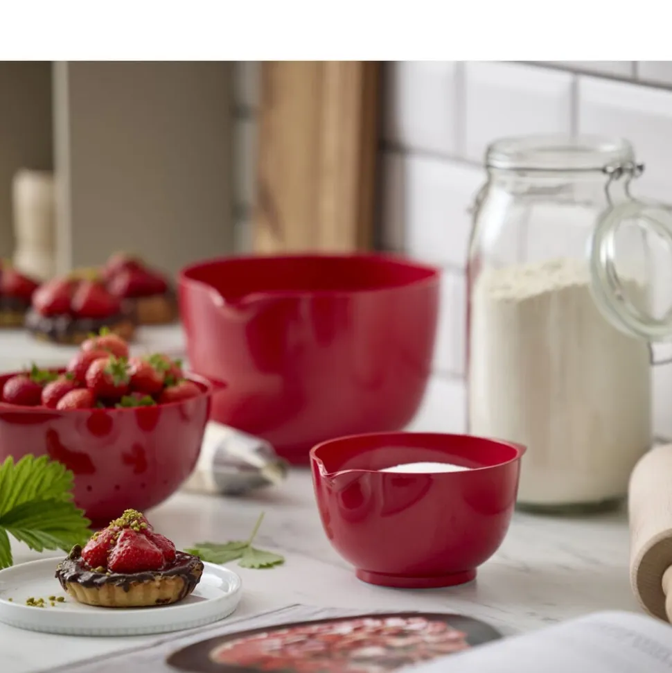Margrethe-skålen er den klassiske røreskål med det gode greb, den praktiske hældetud og den skridsikre bundring. Den nye version af Margrethe-skålen er fremstillet af plastmaterialet Durostima®. Skålen er nu endnu stærkere og mere brudsikker, og med det nye materiale kan den også tåle mikroovn og fryser. Margrethe-skålen er velegnet til såvel tilberedning som servering, og tilkøbes der låg, er røreskålen omdannet til en praktisk opbevaringsskål. 5 års garanti.