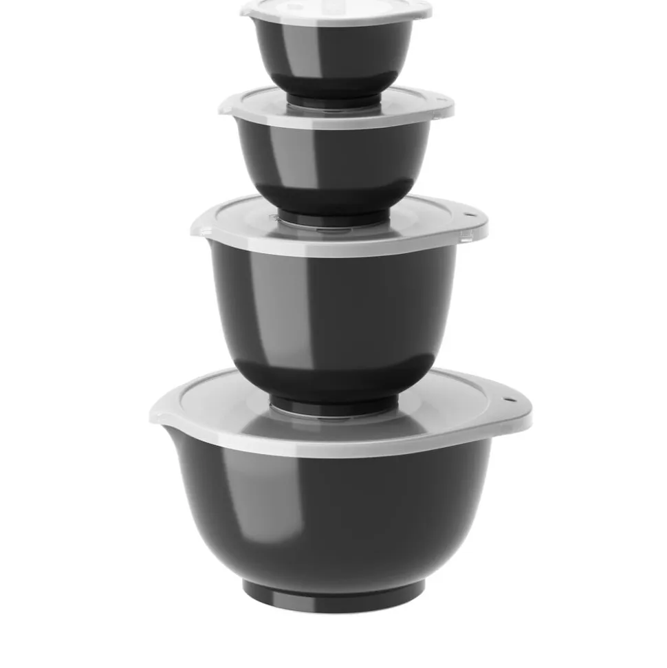 Margrethe røreskålesæt fra Rosti i 4 af de mest anvendte størrelser. Sættet indeholder 0,25 + 0,5 + 1,5 + 3 liter Margrethe-skåle med tilhørende låg.