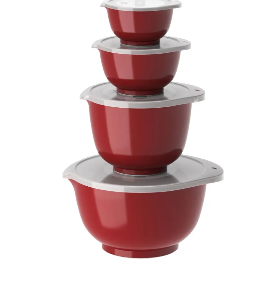 Margrethe røreskålesæt fra Rosti i 4 af de mest anvendte størrelser. Sættet indeholder 0,25 + 0,5 + 1,5 + 3 liter Margrethe-skåle med tilhørende låg.