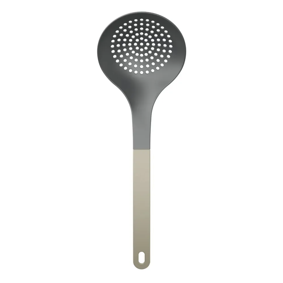 Stor hulske med farvet skaft. Hulskeen er uundværlig, når du skal tage kød eller grøntsager op af en gryde eller frituregryde uden at få væsken med. Fremstillet i nylon, der er skånsomt mod gryder og pander med belægning og tåler varme op til 220 grader C. Flot, ergonomisk design med praktisk ophængshul. Velegnet til opvaskemaskine. 32 cm.