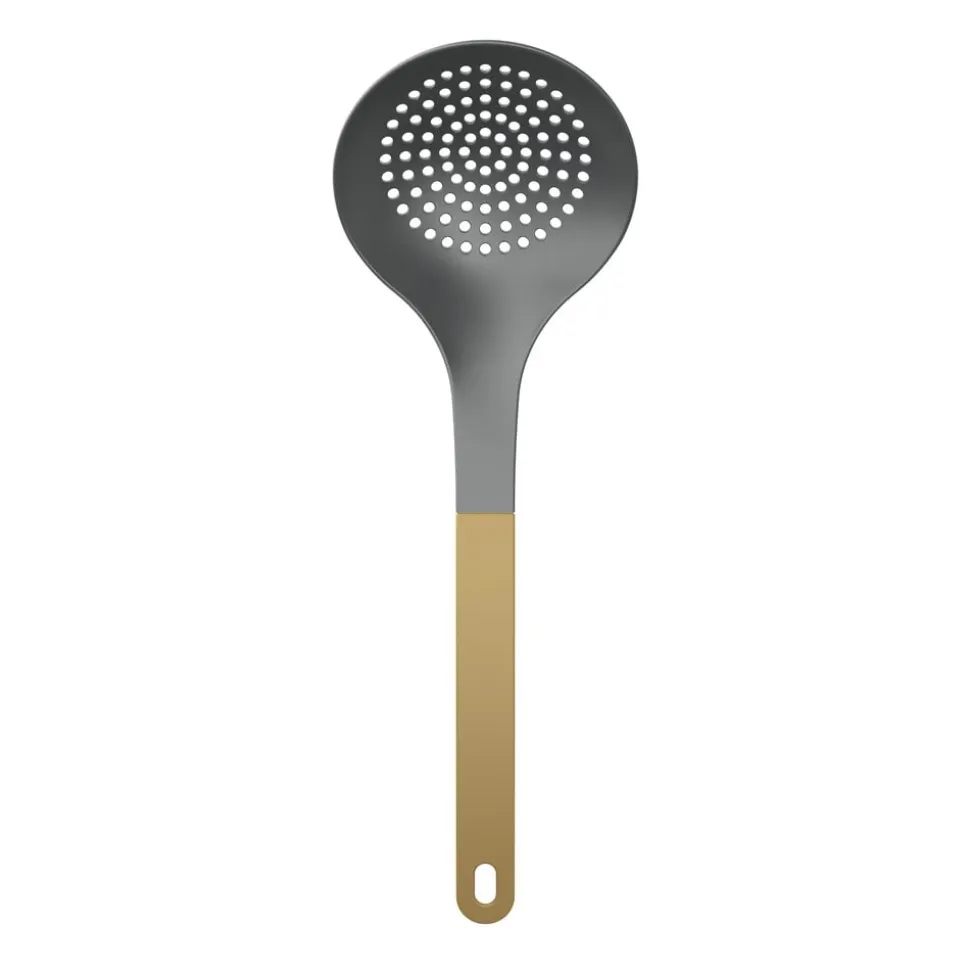 Stor hulske med farvet skaft. Hulskeen er uundværlig, når du skal tage kød eller grøntsager op af en gryde eller frituregryde uden at få væsken med. Fremstillet i nylon, der er skånsomt mod gryder og pander med belægning og tåler varme op til 220 grader C. Flot, ergonomisk design med praktisk ophængshul. Velegnet til opvaskemaskine. 32 cm.