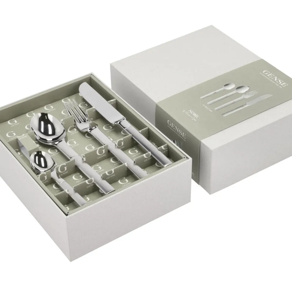 Nobel blev skabt af Gunnar Cyrén til Nobelprisudelingens 90-års jubilæum og er allerede blevet en klassiker. Bestikket er inspireret af begyndelsen af 1800-tallet og Karl XIV Johans sølvbestik. Et bestik, der er umiskendeligt svensk, men med nye detaljer, der overrasker. Nobel tilføjer det ekstra – uanset om du vælger at dække op helt traditionelt med hvide duge og kandelabre, eller moderne og trendy med nye materialer og borddekorationer. Nobel er fremstillet af rustfrit stål med let børstet skaft og højglanspoleret hoved, og det bruges stadig ved den årlige uddeling af Nobelprisen i Stockholm. Tåler opvaskemaskine.