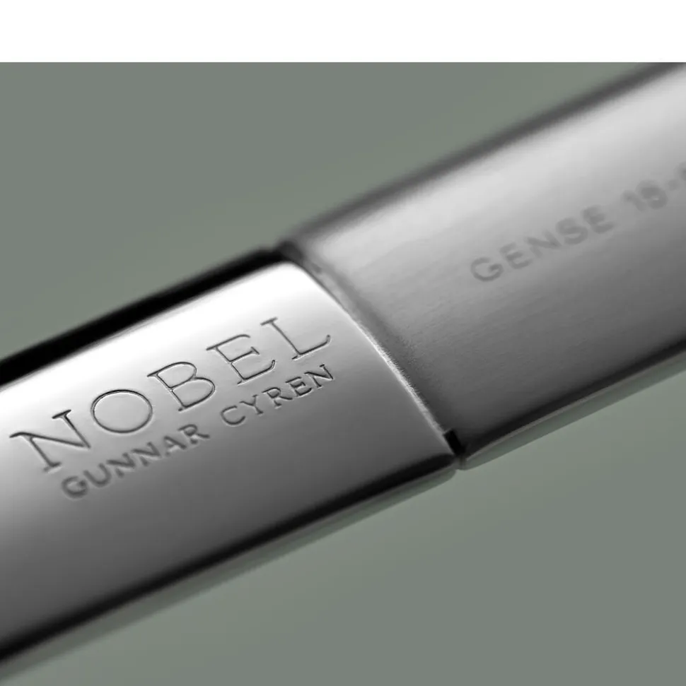 Nobel blev skabt af Gunnar Cyrén til Nobelprisudelingens 90-års jubilæum og er allerede blevet en klassiker. Bestikket er inspireret af begyndelsen af 1800-tallet og Karl XIV Johans sølvbestik. Et bestik, der er umiskendeligt svensk, men med nye detaljer, der overrasker. Nobel tilføjer det ekstra – uanset om du vælger at dække op helt traditionelt med hvide duge og kandelabre, eller moderne og trendy med nye materialer og borddekorationer. Nobel er fremstillet af rustfrit stål med let børstet skaft og højglanspoleret hoved, og det bruges stadig ved den årlige uddeling af Nobelprisen i Stockholm. Tåler opvaskemaskine.