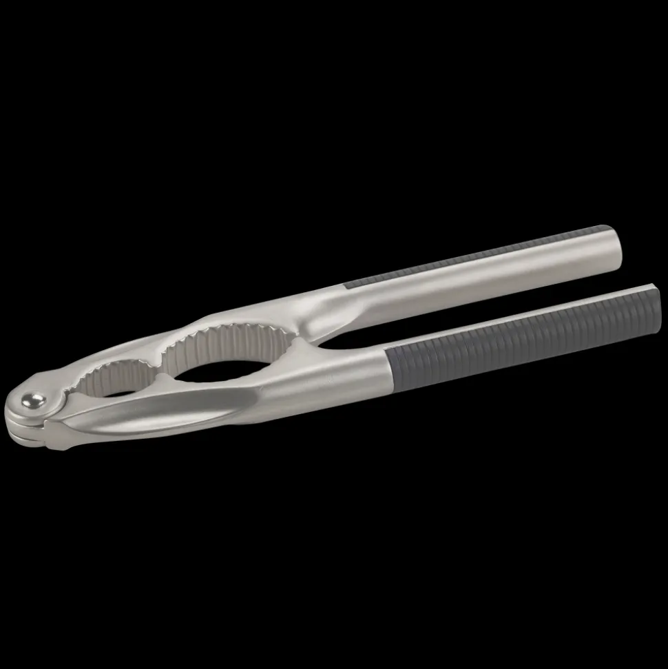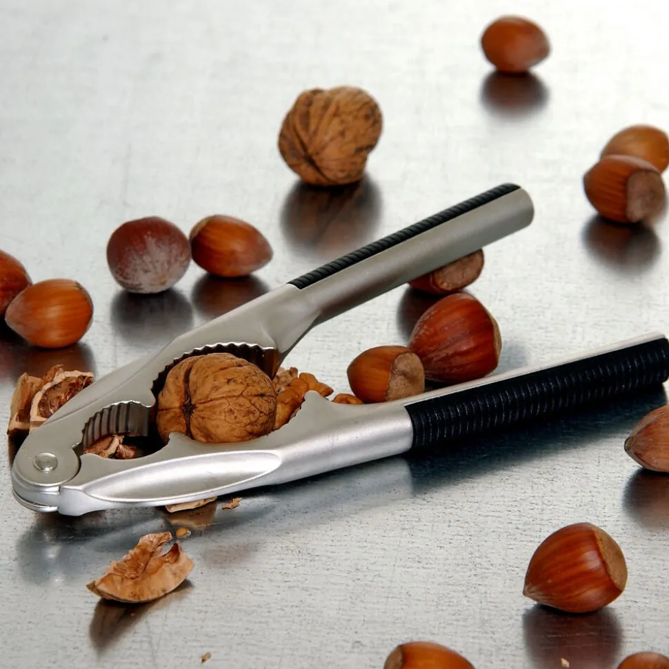 Kraftig nøddeknækker i stål, der let knækker nødder i to størrelser og har et behageligt greb