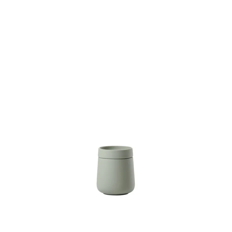Den lille stentøjskrukke med låg er lige så fin, som den er anvendelig. Fyld den med alt det, der endnu ikke har fået en fast plads på badeværelset. Vatrondeller, hårpynt eller kontaktlinser måske? Låget har en fin fordybning, og det er derfor som skabt til at lægge smykkerne på, inden du lægger dig på puden.