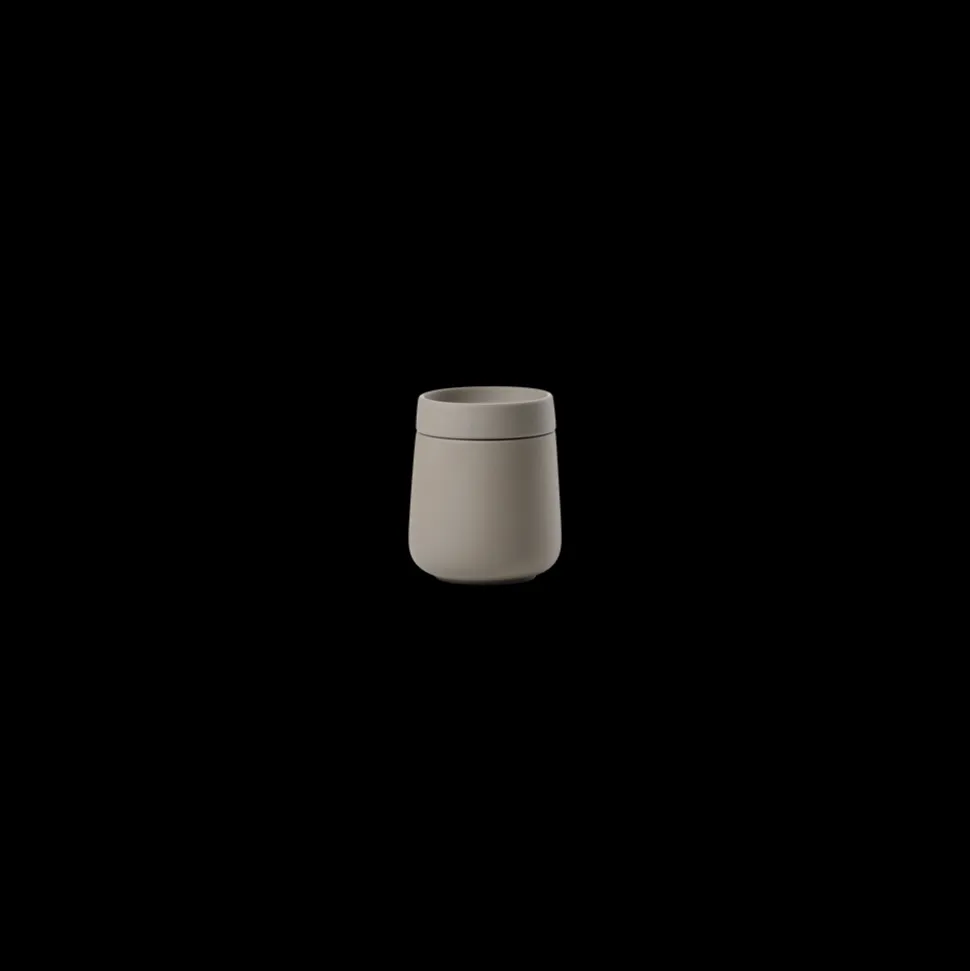 Den lille stentøjskrukke med låg er lige så fin, som den er anvendelig. Fyld den med alt det, der endnu ikke har fået en fast plads på badeværelset. Vatrondeller, hårpynt eller kontaktlinser måske? Låget har en fin fordybning, og det er derfor som skabt til at lægge smykkerne på, inden du lægger dig på puden.