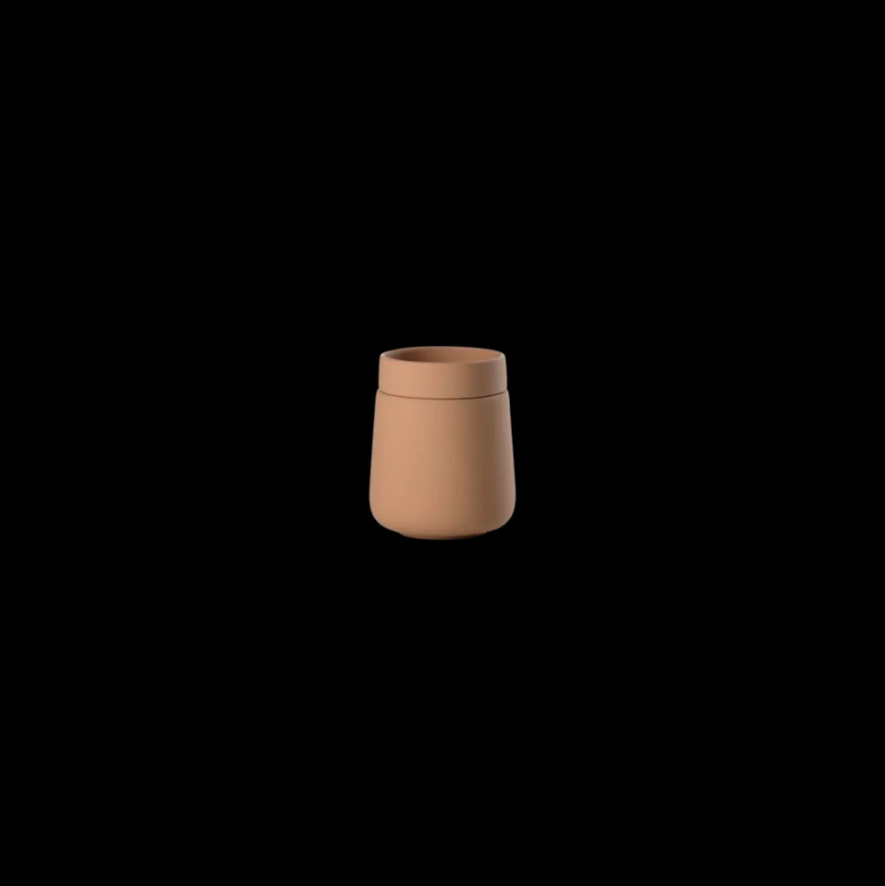 Den lille stentøjskrukke med låg er lige så fin, som den er anvendelig. Fyld den med alt det, der endnu ikke har fået en fast plads på badeværelset. Vatrondeller, hårpynt eller kontaktlinser måske? Låget har en fin fordybning, og det er derfor som skabt til at lægge smykkerne på, inden du lægger dig på puden.