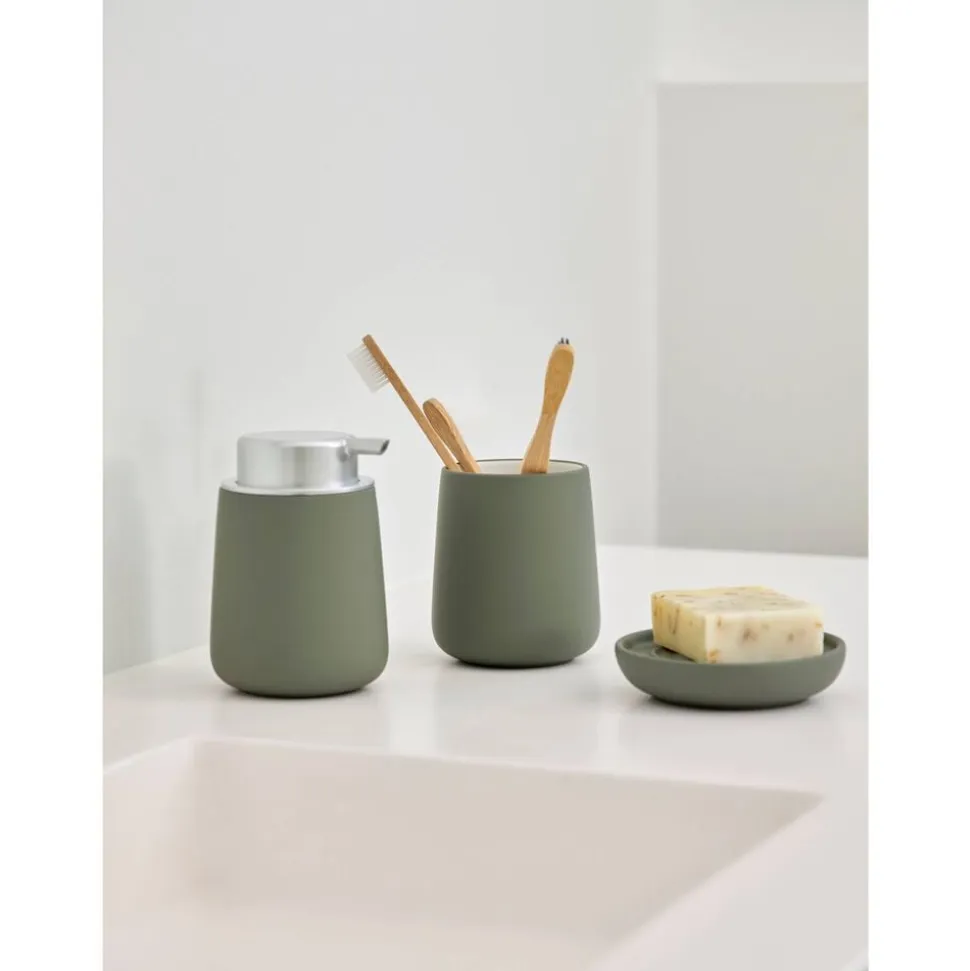 Sæbedispenseren fra Nova badserie spreder ro og harmoni på badeværelset. Serien skaber fornemmelsen af luksus og spa-stemning med sin uimodståelige, lækre soft touch-overflade med detaljer i stål-look og et blødt formsprog. H: 11,5 cm. 0,25 l.
