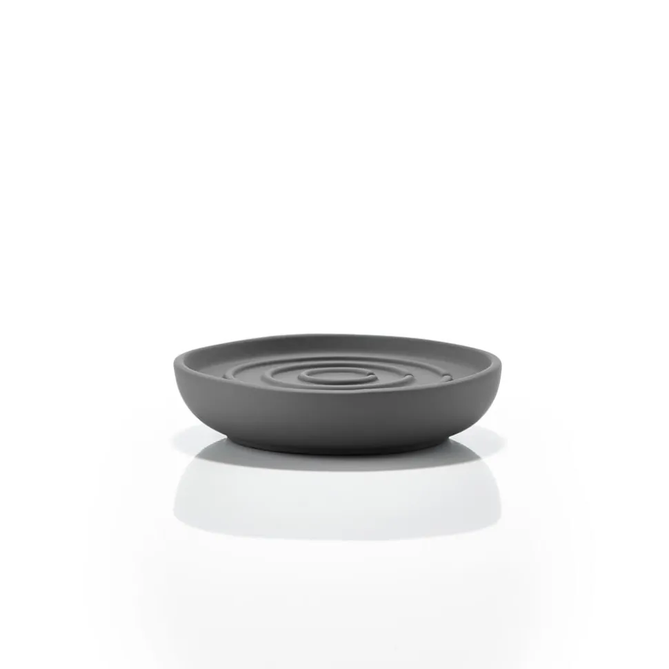 Sæbeskålen fra Nova badserie spreder ro og harmoni på badeværelset. Serien skaber fornemmelsen af luksus og spa-stemning med sin uimodståelige, lækre soft touch-overflade med detaljer i stål-look og et blødt formsprog. Dia. 11 cm, højde 2,5 cm.