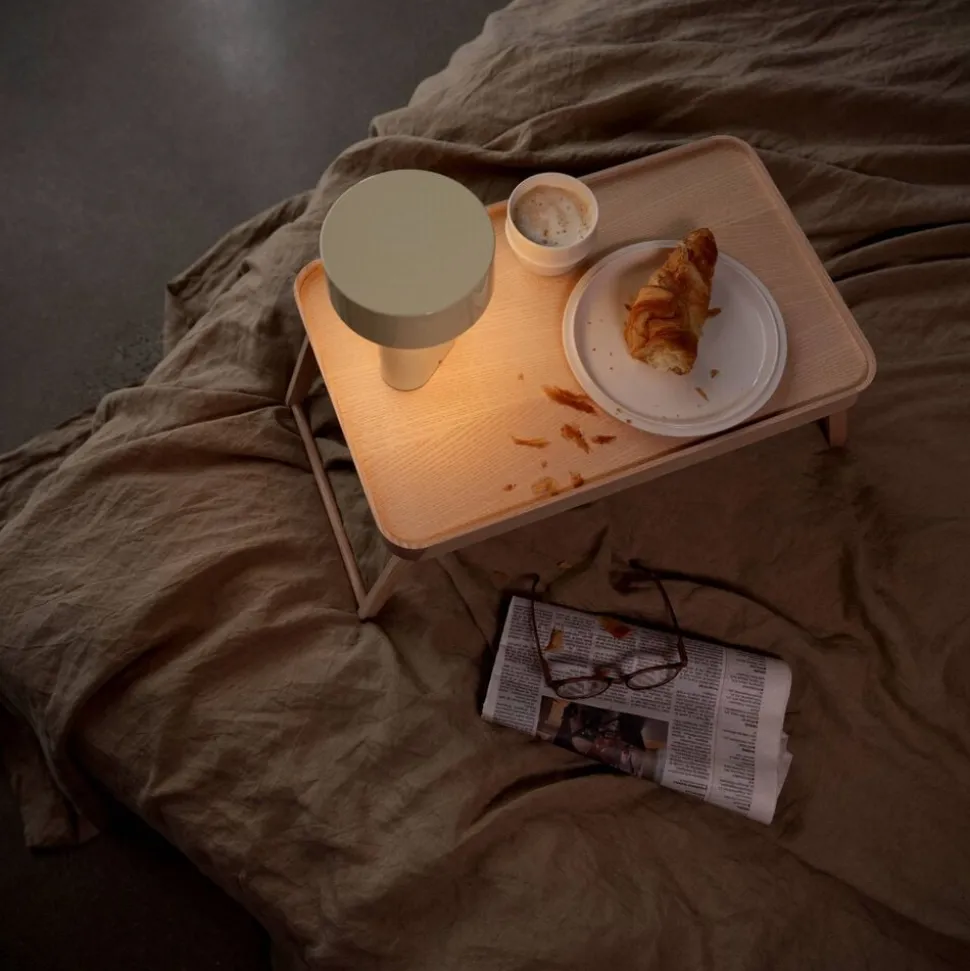 Du bestemmer på hvilken led lampen skal stå, og dermed om den skal være bred eller smal. Du tænder via den diskrete knap på forsiden, og lyskeglen er behageligt spredt og nedadpeget, så den ikke blænder. Den har tre forskellige lysniveauer, afhængig af om du ønsker lys til læsefunktion eller ren dekoration, fx på reol, hylde eller i et vindue.
