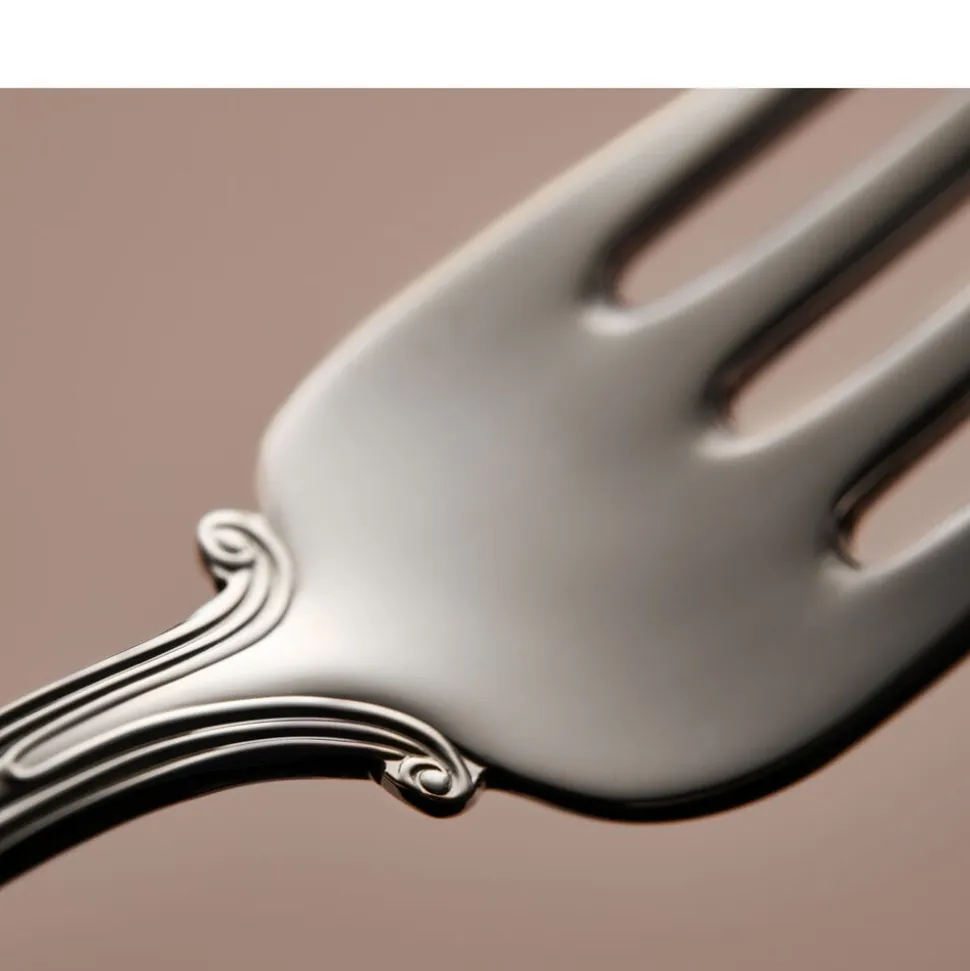 Olga har sin oprindelse i den engelske nyrokoko fra det 19. århundrede. Bestikket er designet til at passe til den tids storstilede borddækninger med krystalglas og smukt foldede servietter. Og det gør sig mindst lige så godt i dag – uanset stil og øvrige omgivelser. Med sine levende bladmønstre er det et design, der tager form og bliver noget, man snakker om rundt om bordet.