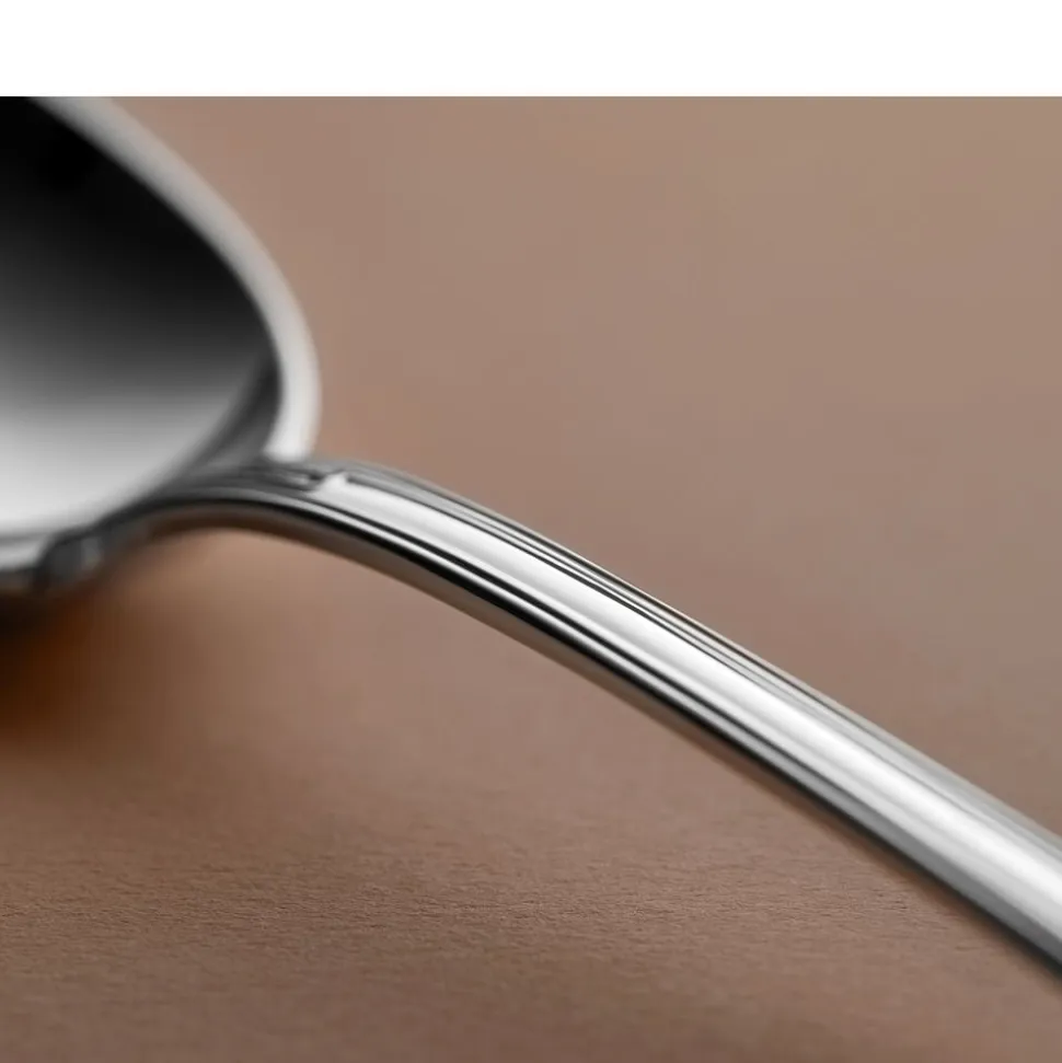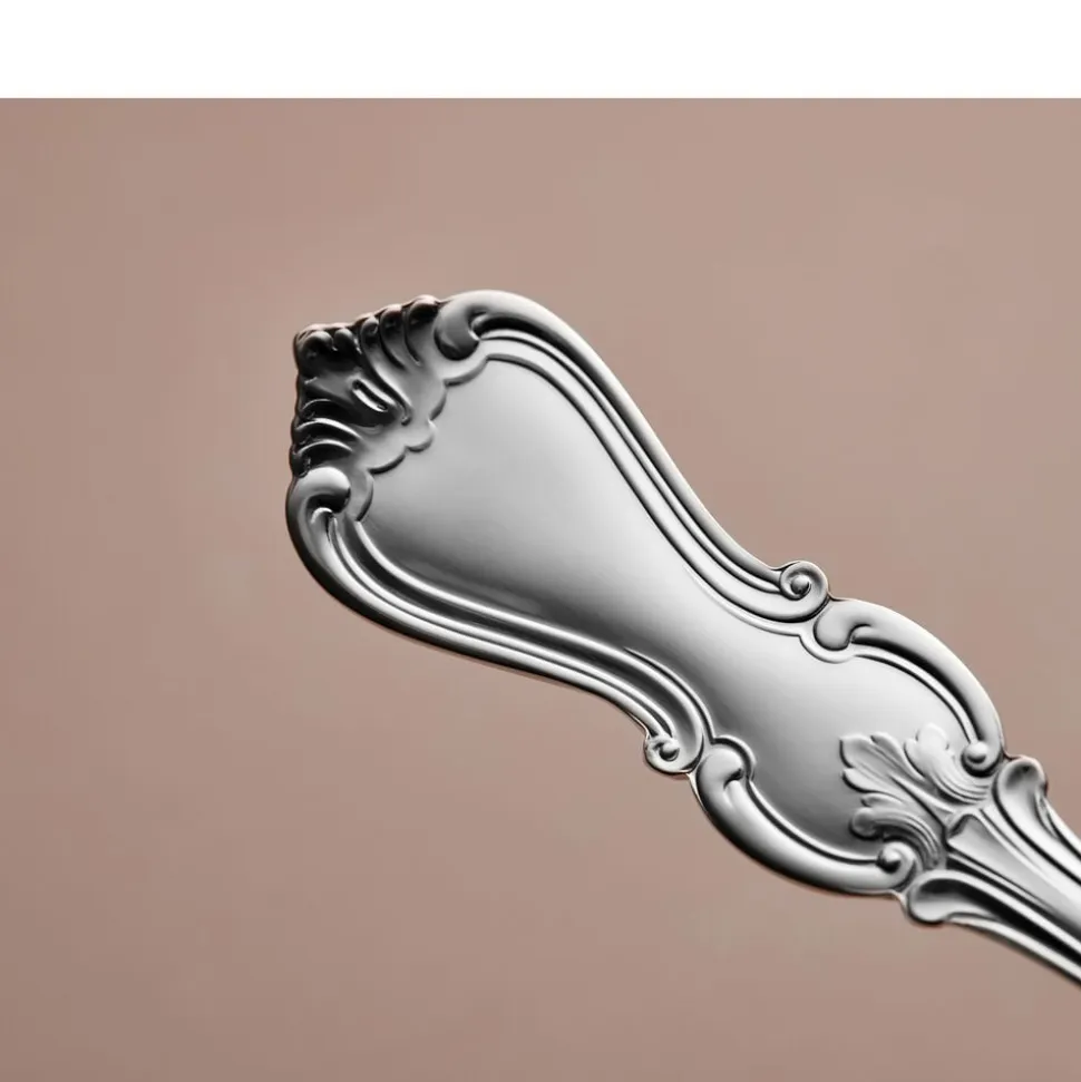 Olga har sin oprindelse i den engelske nyrokoko fra det 19. århundrede. Bestikket er designet til at passe til den tids storstilede borddækninger med krystalglas og smukt foldede servietter. Og det gør sig mindst lige så godt i dag – uanset stil og øvrige omgivelser. Med sine levende bladmønstre er det et design, der tager form og bliver noget, man snakker om rundt om bordet.