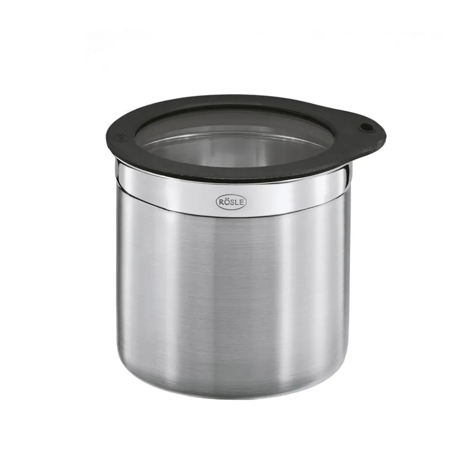RÖSLE opbevaringsdåse af rustfrit stål er perfekt til opbevaring af mad, da smagen ikke påvirkes, samtidig med at den er nem at rengøre samt holdbar. Silikonekanten på glaslåget forsegler opbevaringsdåsen helt tæt, mens det flade låg gør det nemt at stable flere opbevaringsdåser.