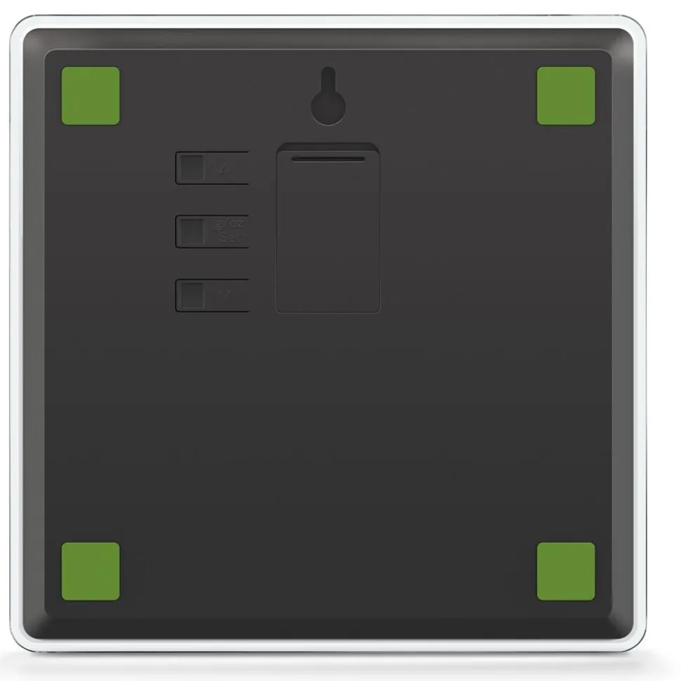Køkkenvægten har en overflade af praktisk sikkerhedsglas, der er hurtigt og nemt at gøre rent. 2 x 1,5V AAA batterier er inkluderet. Kan hænges på væggen og fungere som vægur, da displayet viser klokkeslæt, når vægten ikke er i brug. 5 års garanti.