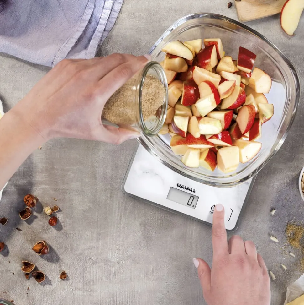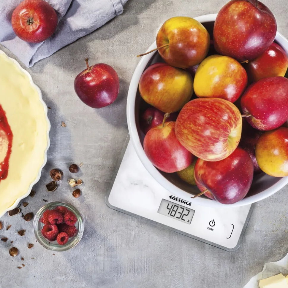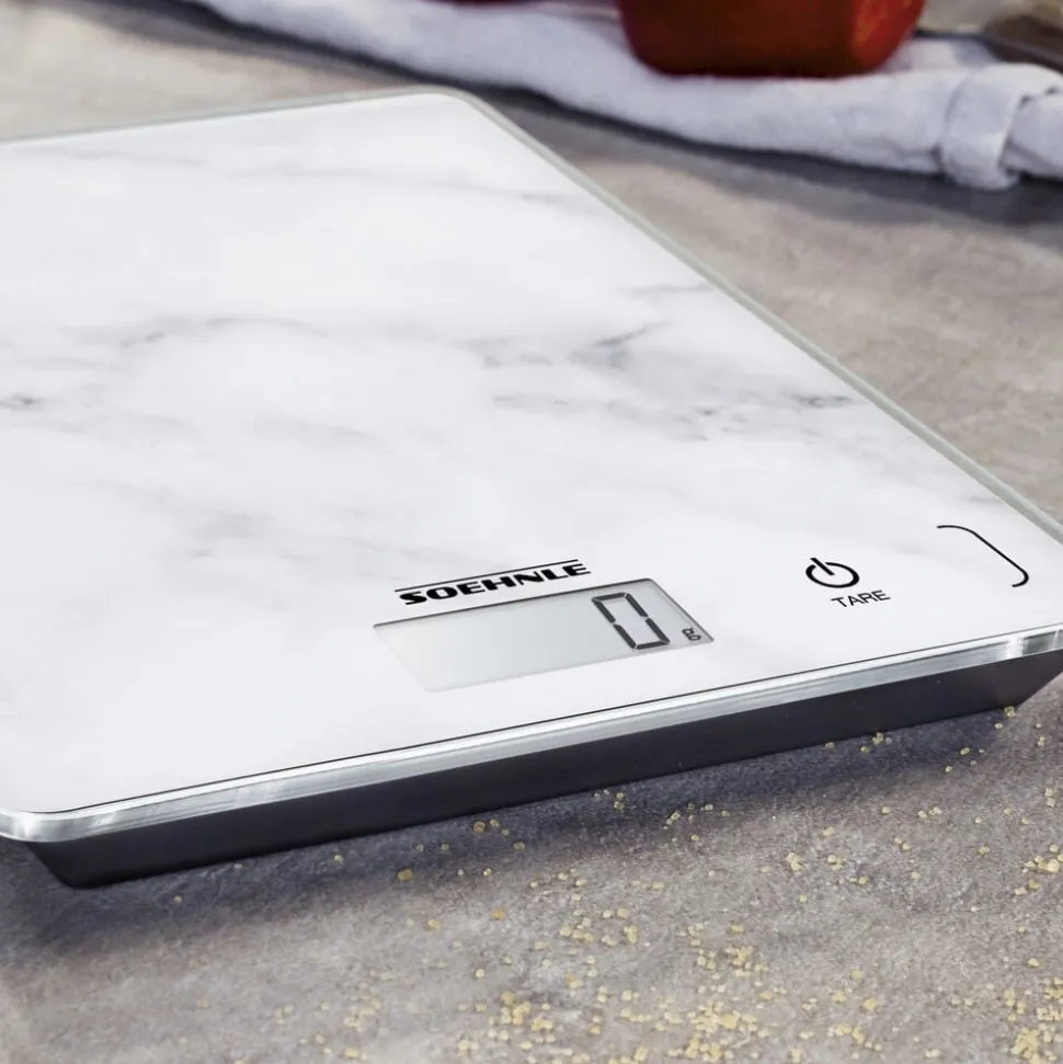 Køkkenvægt i kompakt og ekstra tyndt design, 20 x 15 x 1,3 cm. Vejer op til 5 kg med interval på 1 g, hvilket gør den ideel til fx krydderier. Letlæseligt display, tarafunktion og energisparende autosluk-funktion. Enhederne vises i g/kg eller oz/lb.