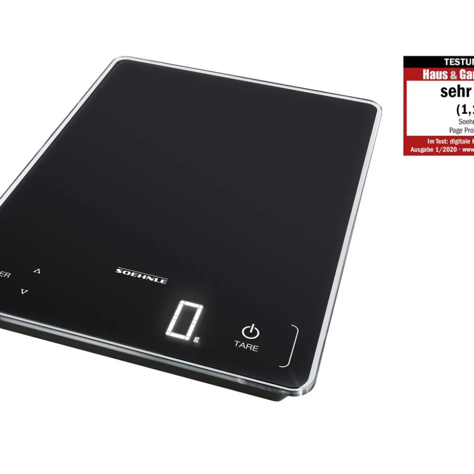 Page Profi 100 er en køkkenvægt i kompakt og ekstra tyndt design (24 x 17,5 x 1,8 cm). Vejer op til 15 kg med interval på 1 g, hvilket gør den ideel til fx krydderier. Letlæseligt display, tarafunktion og automatisk sluk. Enhederne vises i g/kg eller oz/lb. Køkkenvægten har en overflade af praktisk sikkerhedsglas, der er hurtigt og nemt at gøre rent.