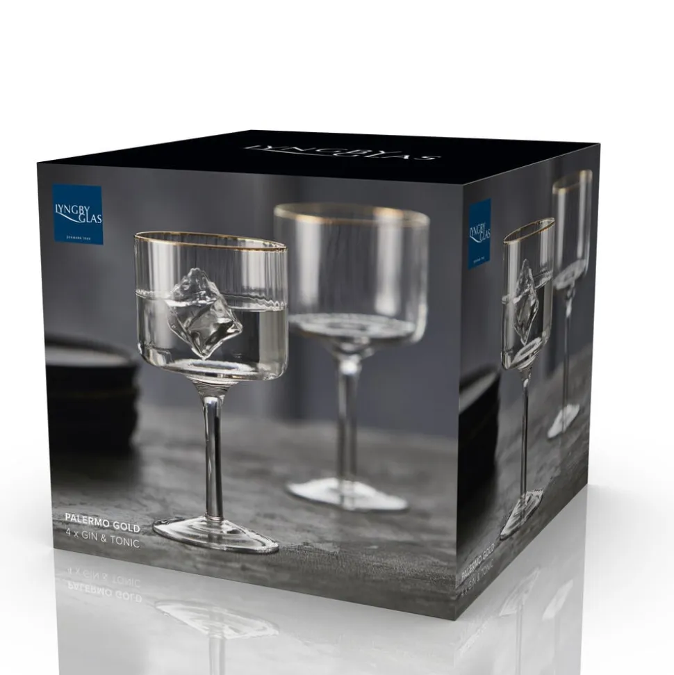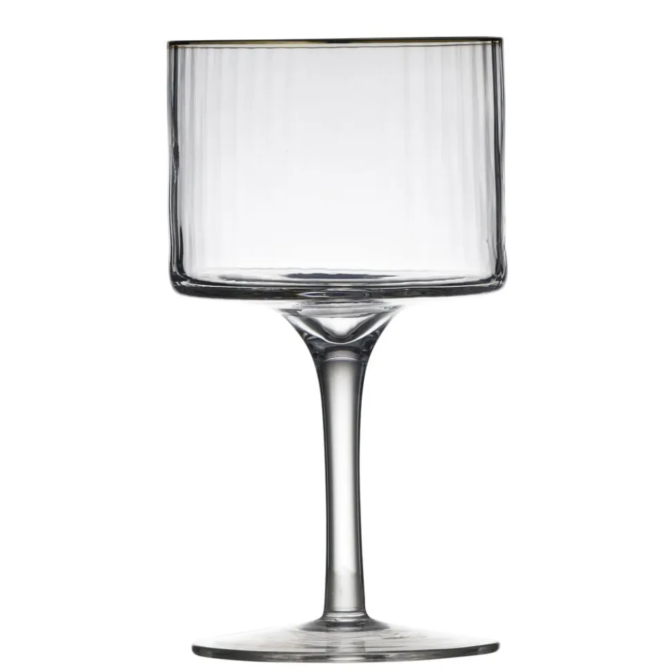 Smukt gin & tonic-glas. Det elegante, riflede design med en fin guldkant giver glasset et flot vintagelook, der samtidig afspejler tidens trends. Server en G&T i glasset og lad de fine facetter reflektere lyset og glassets indhold på smukkeste vis.