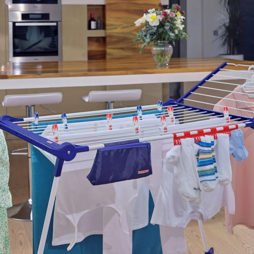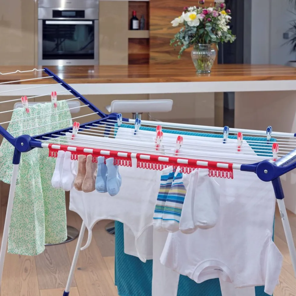 – 2 foldbare vinger med en vingehøjde på 105 cm – velegnet til lange bukser, håndklæder m.m.