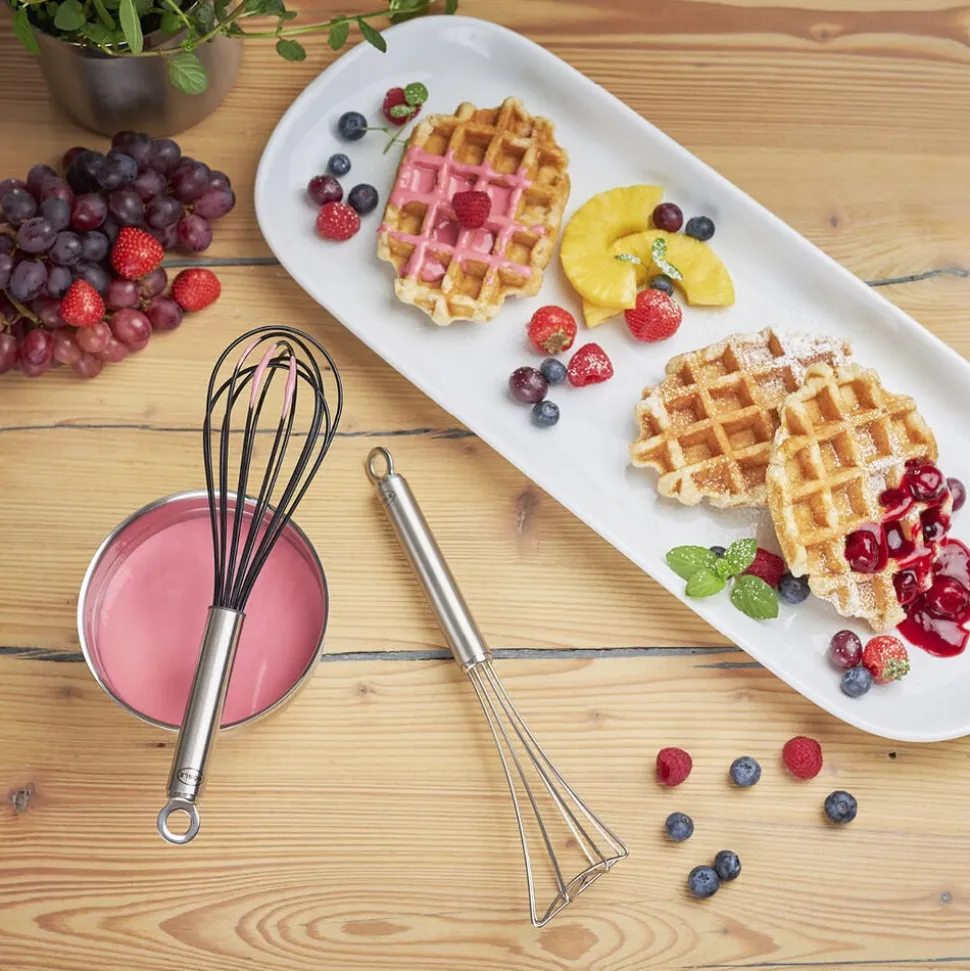 Piskeriset gør det helt nemt at piske ingredienser med flydende eller halvflydende konsistens med et perfekt resultat. Materialerne 18/10 rustfrit stål og silikone betyder, at piskeriset klarer selv høje temperaturer på op til 260 °C. Tåler opvaskemaskine