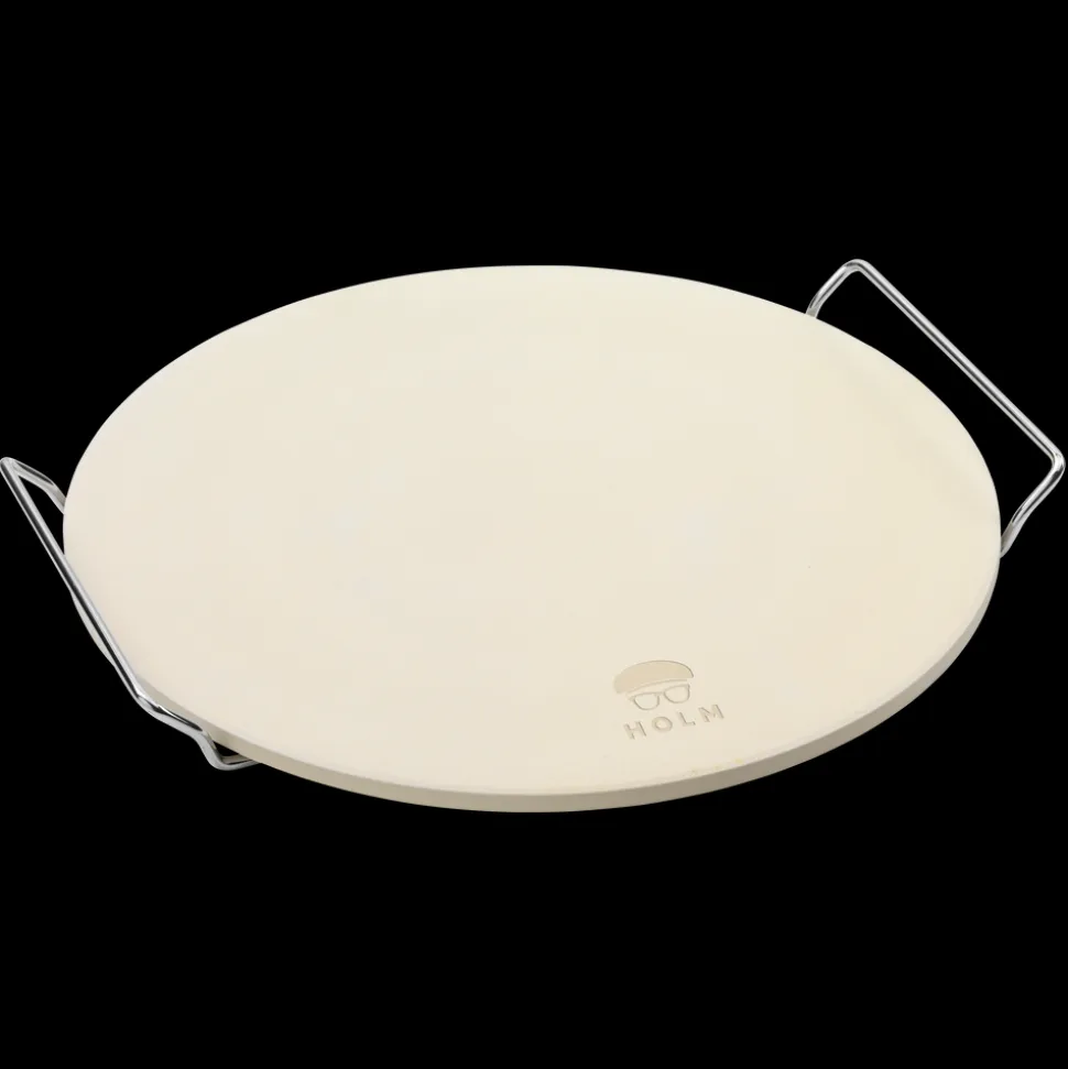 Få den perfekte pizzabund, når du bruger en pizzasten. Pizzastenen har en diameter på 33 cm, og kan anvendes både i en almindelig ovn og på grill. Der medfølger en smart krombelagt holder, som kan bruges til servering.