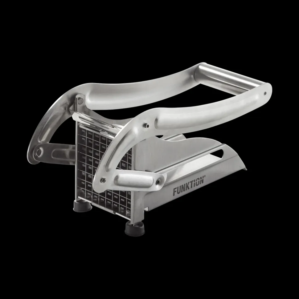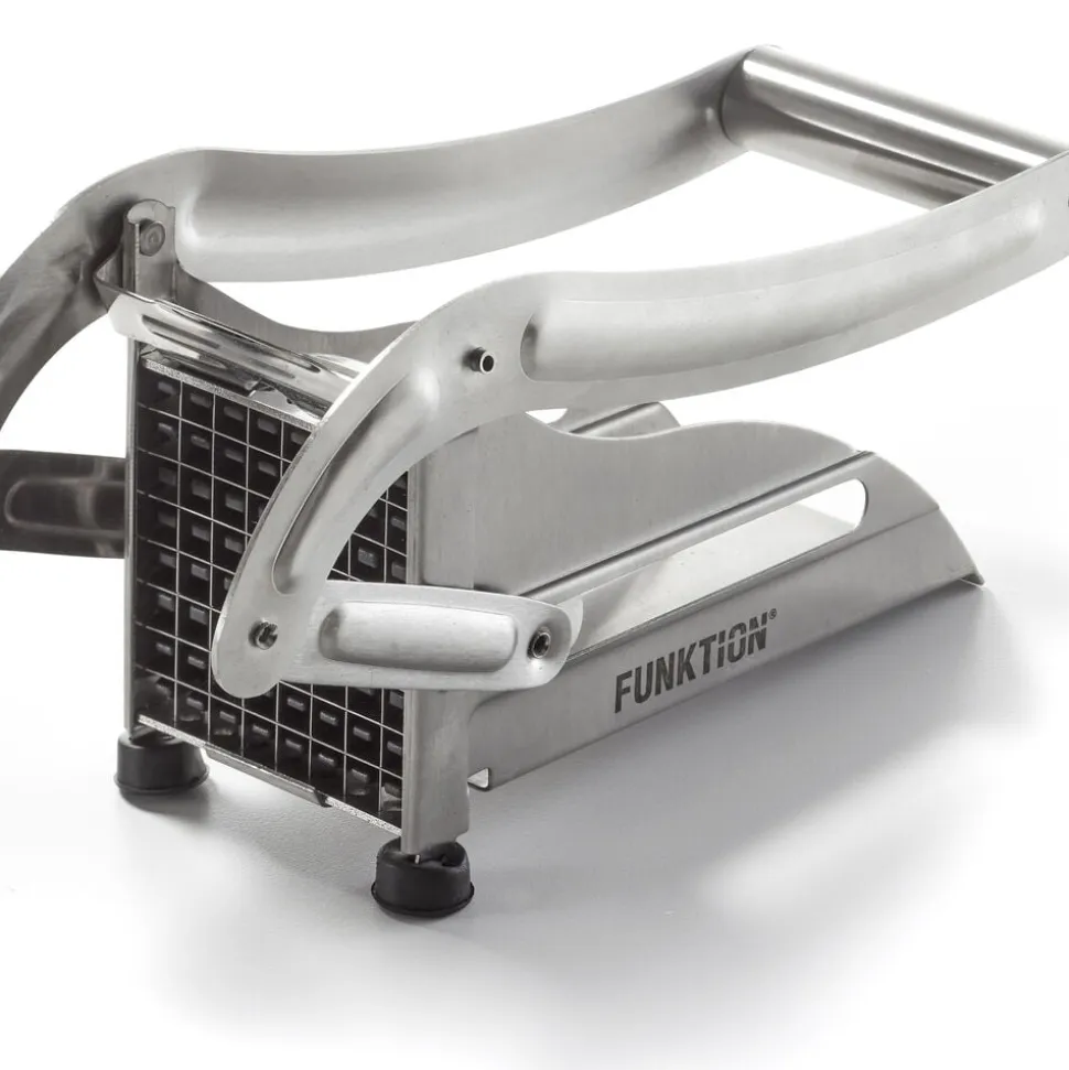 Pommes frites-jern fremstillet i rustfrit stål. To forskellige skær med henholdsvis 36 og 64 huller til at lave små og store pommes frites medfølger. Bør ikke anvendes til hårde rodfrugter eller søde kartofler.
