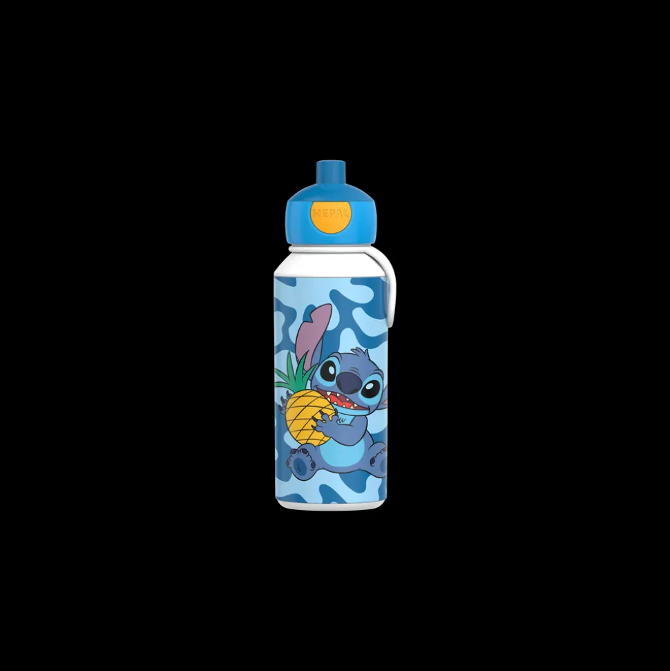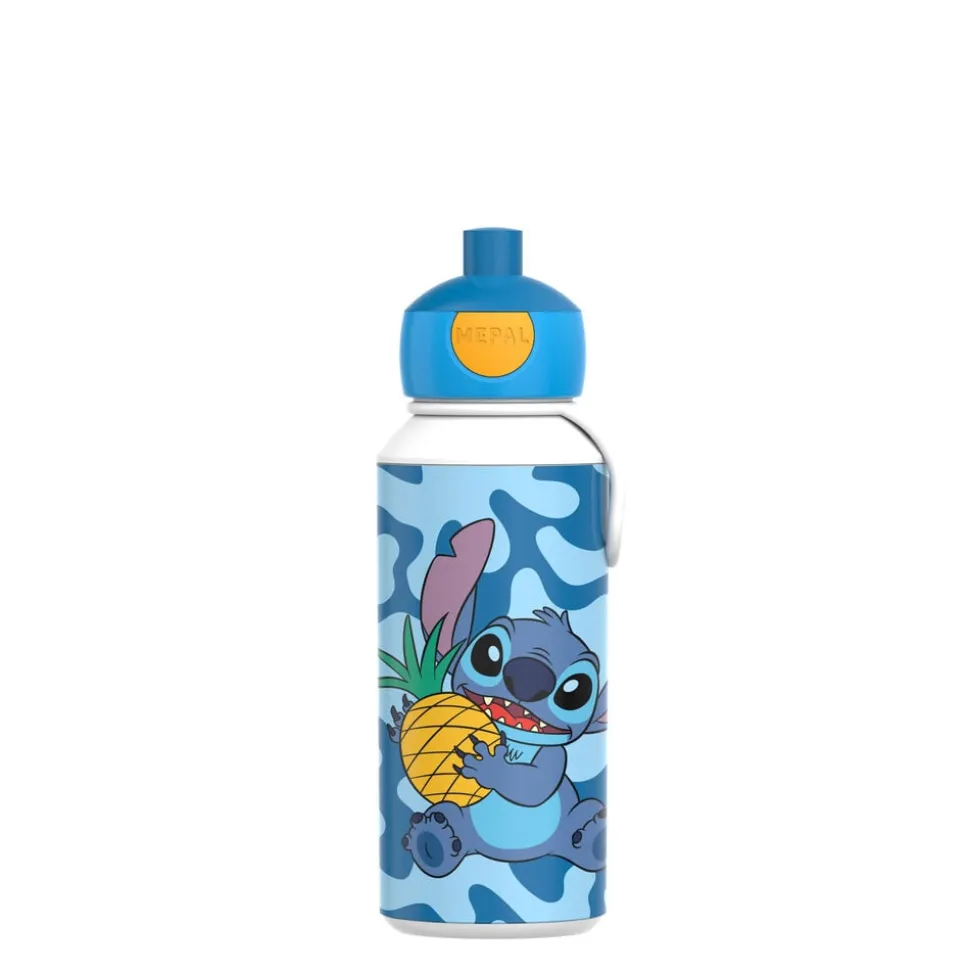 Mepal drikkeflaske med Stitch-motiv. Den kendte, robuste drikkeflaske rummer 400 ml, har praktisk silikonestrop og et smart pop-up system med mundstykke, der nemt udløses ved tryk på en knap og samtidig er let at skille ad og rengøre.