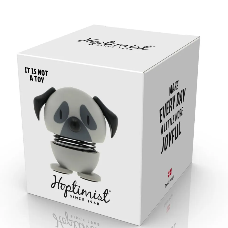 Lille, rund og helt uimodståelig. Denne Hoptimist-mops har hængeører, korte ben og det der klassiske, lidt mutte blik. Den hopper glad, når du giver den et kærligt klap.
