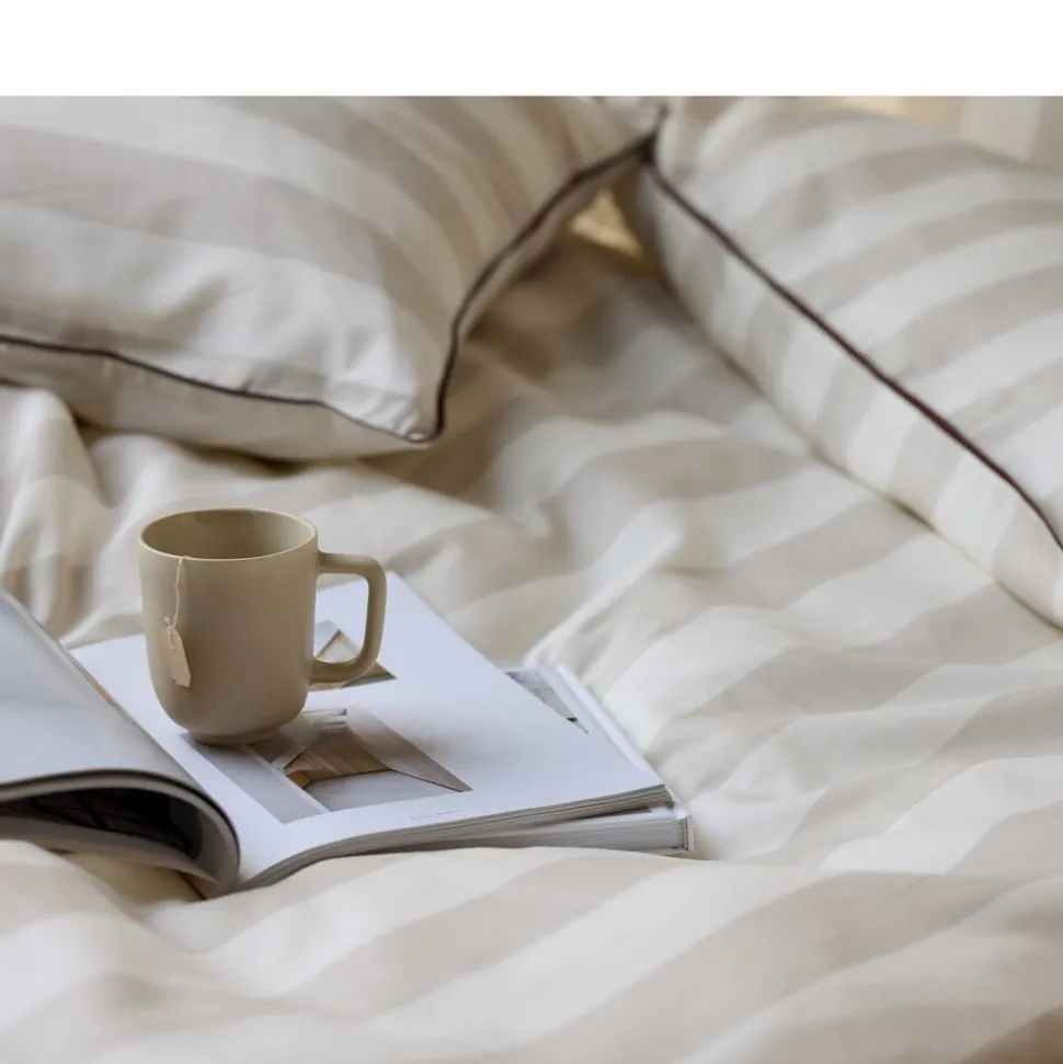 Opnå ultimativ komfort og tidløst design med Södahls Ray sengetøj, fremstillet i 100 % økologisk bomuld og certificeret med Svanemærket. Med et klassisk stribemønster i farverne beige eller cloud grey og en kontrastfarvet piping tilføjer Ray et eksklusivt og elegant præg til dit soveværelse.