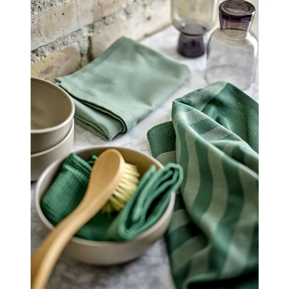 Dette design afspejler vores kærlighed til rene linjer og minimalistisk elegance. Det sofistikerede motiv bestående af lodrette og vandrette striber er både moderne og klassisk. Det grafiske design bliver komplementeret af et viskestykke i en ensfarvet twillvævning.