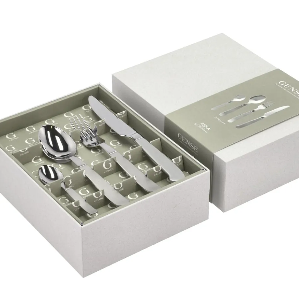 Rejka er et bestik med stor personlighed. Kombinationen af matte og blanke overflader giver bestikket en særlig elegance. Inspirationen er hentet fra traditionelt skandinavisk designsprog med detaljer, der medvirker til at give en personlig borddækning. Fremstillet af rustfrit stål med matpoleret skaft og blank front. Tåler opvaskemaskine.