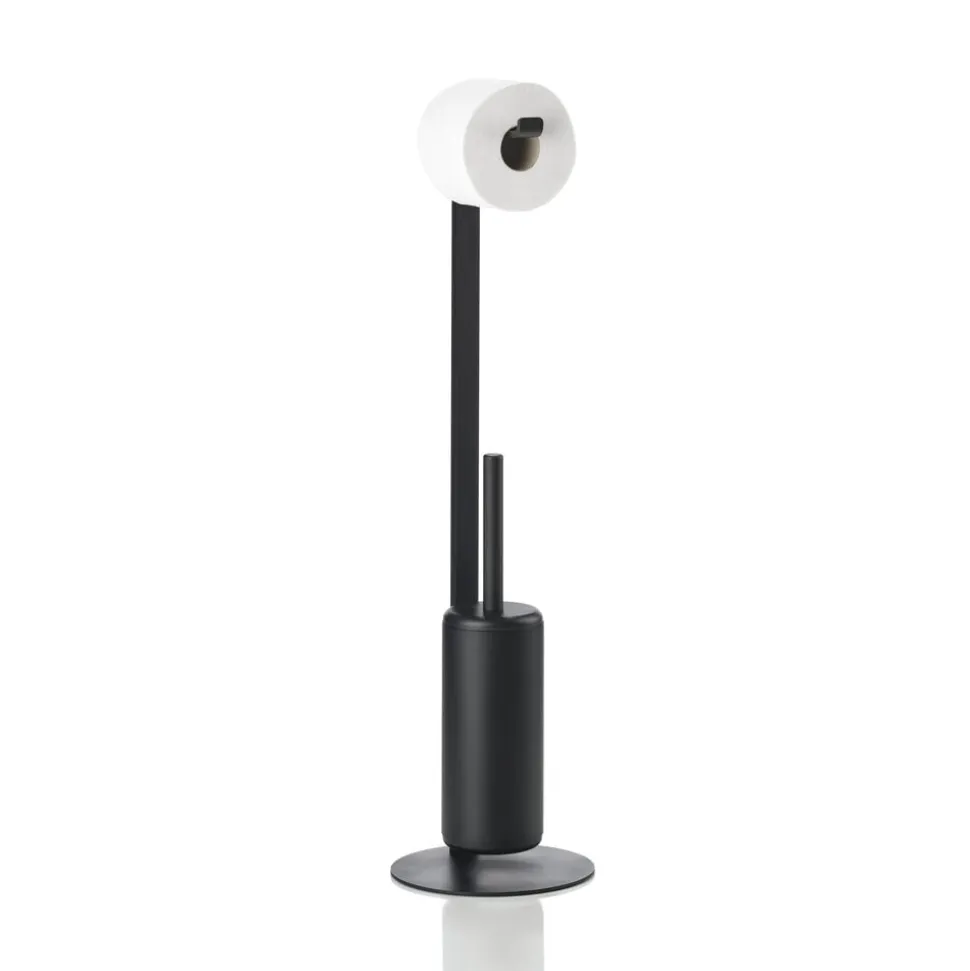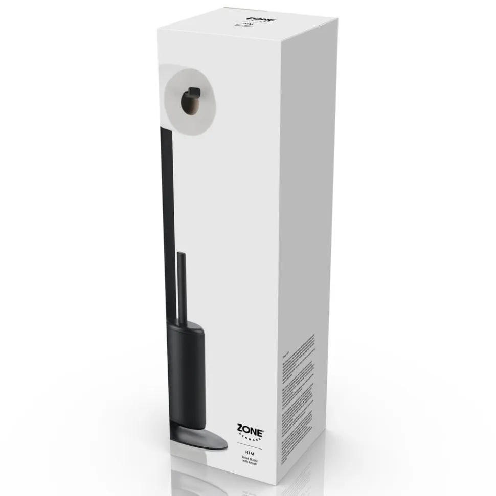 Stilren funktionel løsning, der samler toiletpapir og toiletbørste i ét fritstående design – helt uden brug af skruer eller vægmontering. Den slanke rulleholder finder let sin plads i ethvert badeværelse og kan nemt flyttes takket være grebet i toppen. Praktisk ved rengøring – eller når du vil justere udtrykket en smule. Børsten står diskret og klar i bunden, mens det enkle formsprog matcher resten af RIM-serien.