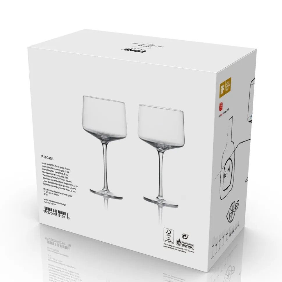 Denne serie med en række forskellige glas af blyfrit mundblæst krystal er en del af Zone Denmarks barkoncept Rocks. Designet er en helt enkel konisk form med lækre, sanselige detaljer som fx massiv bund – skabt til at få det bedste frem i dine drinks og sjusser.