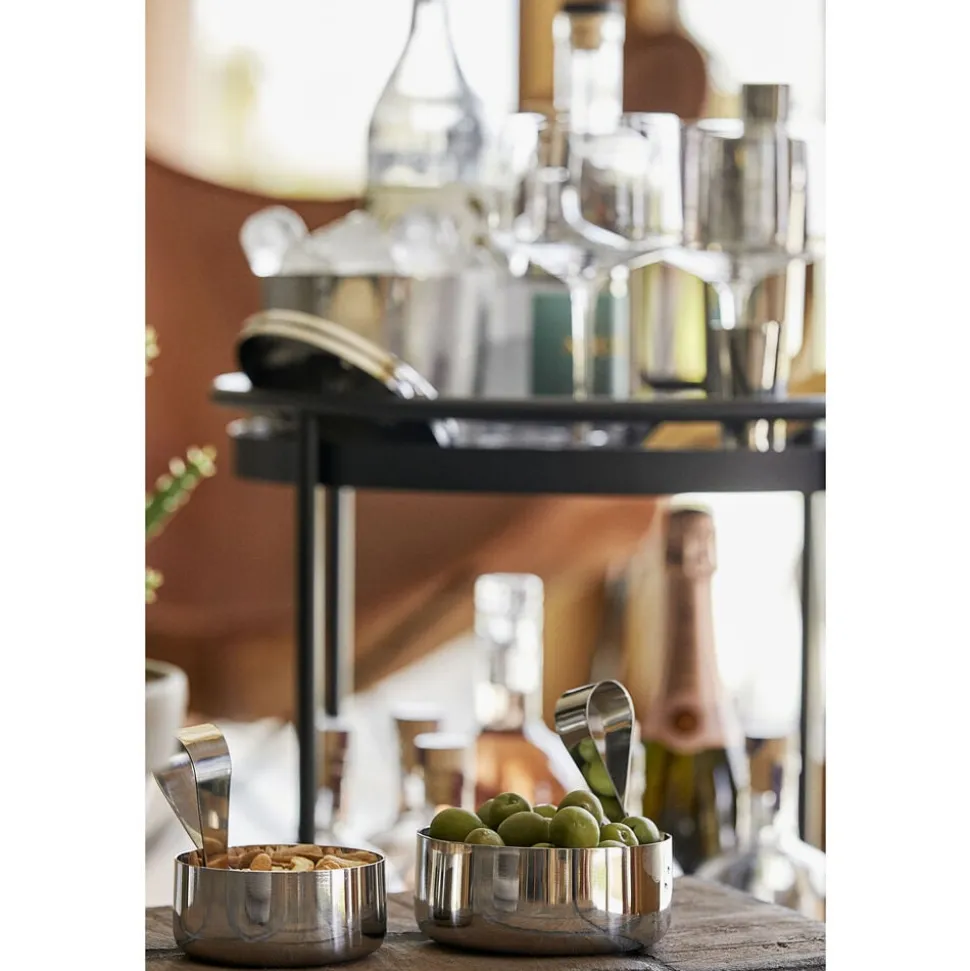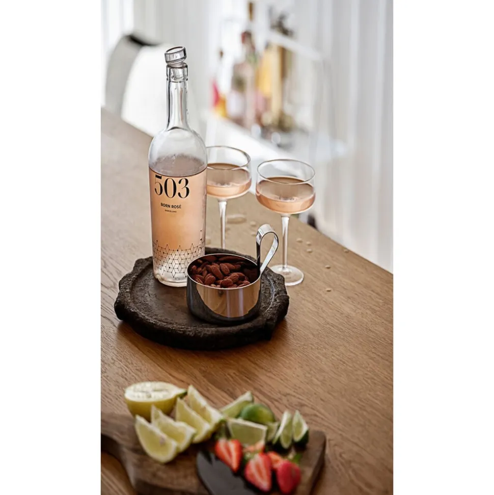Fyld den lille skål med fx peanuts, cashews eller saltmandler og server dem til din yndlingsdrink. Den fine ske gør det hygiejnisk at dele, og den opbevares fikst på kanten af skålen som en smuk forlængelse af det enkle design.