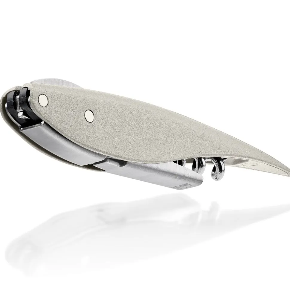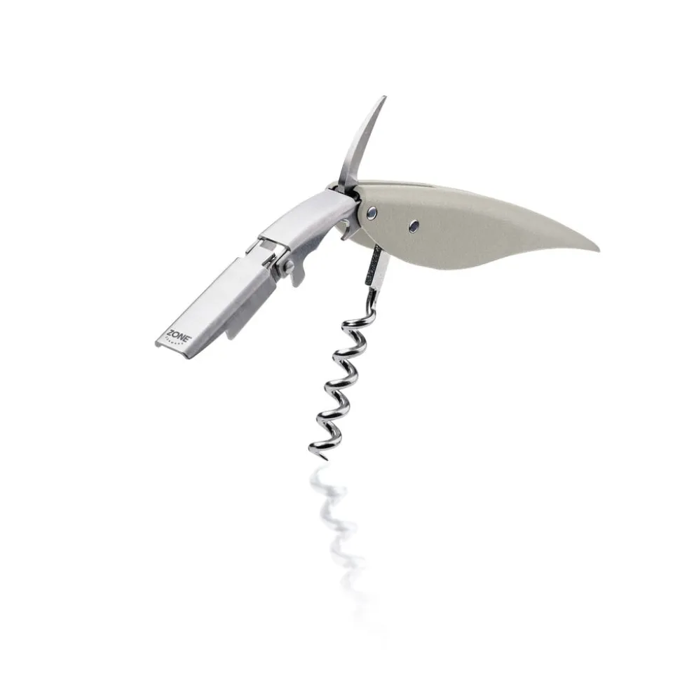Den elegante proptrækker Feather er en lækker fortolkning af tjenerværktøjet, en klassiker i ny fjerdragt. Feather har indbygget folieskærer og oplukker, og den bøjelige arm gør det let at åbne flasken i to trin uden at bruge mange kræfter.