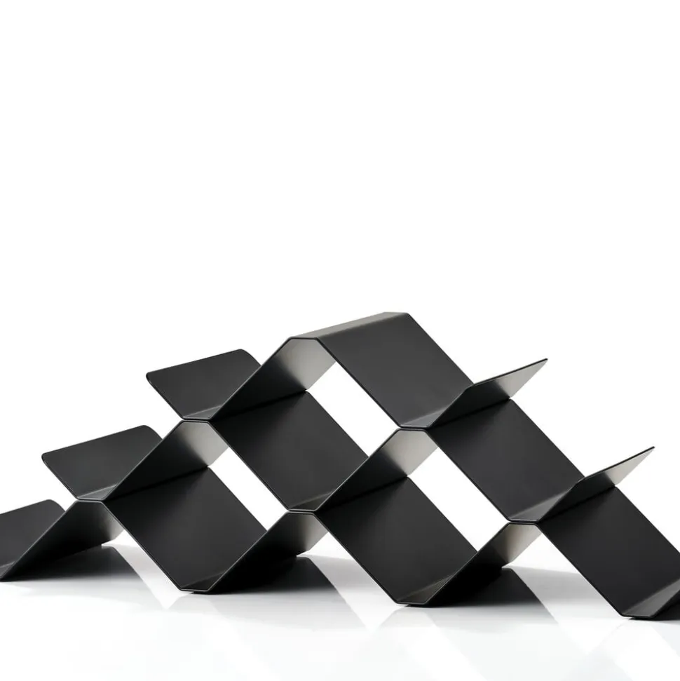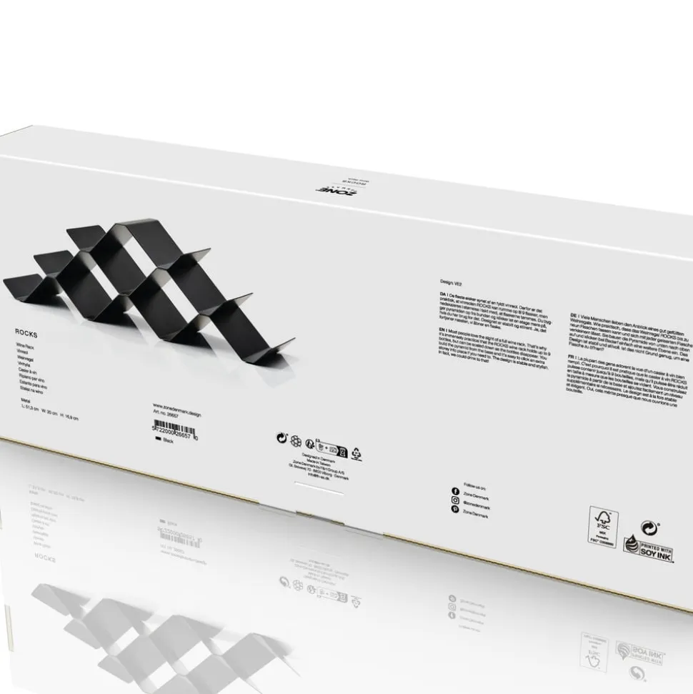 Stilrent og stabilt design. De fleste elsker synet af en fyldt vinreol. Derfor er det praktisk, at vinreolen Rocks kan rumme op til 9 flasker, men nedskaleres i størrelse i takt med, at flaskerne tømmes. Pyramiden bygges op fra bunden, og du kan nemt klikke en etage mere på, hvis du får brug for det.